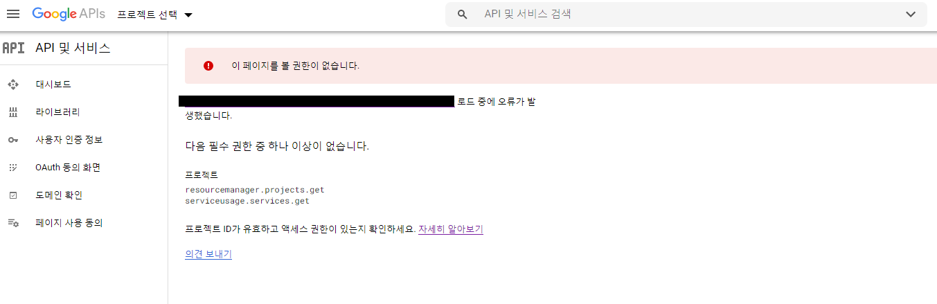 프로젝트 ID가 유효하고 액세스 권한이 있는지 확인하세요.