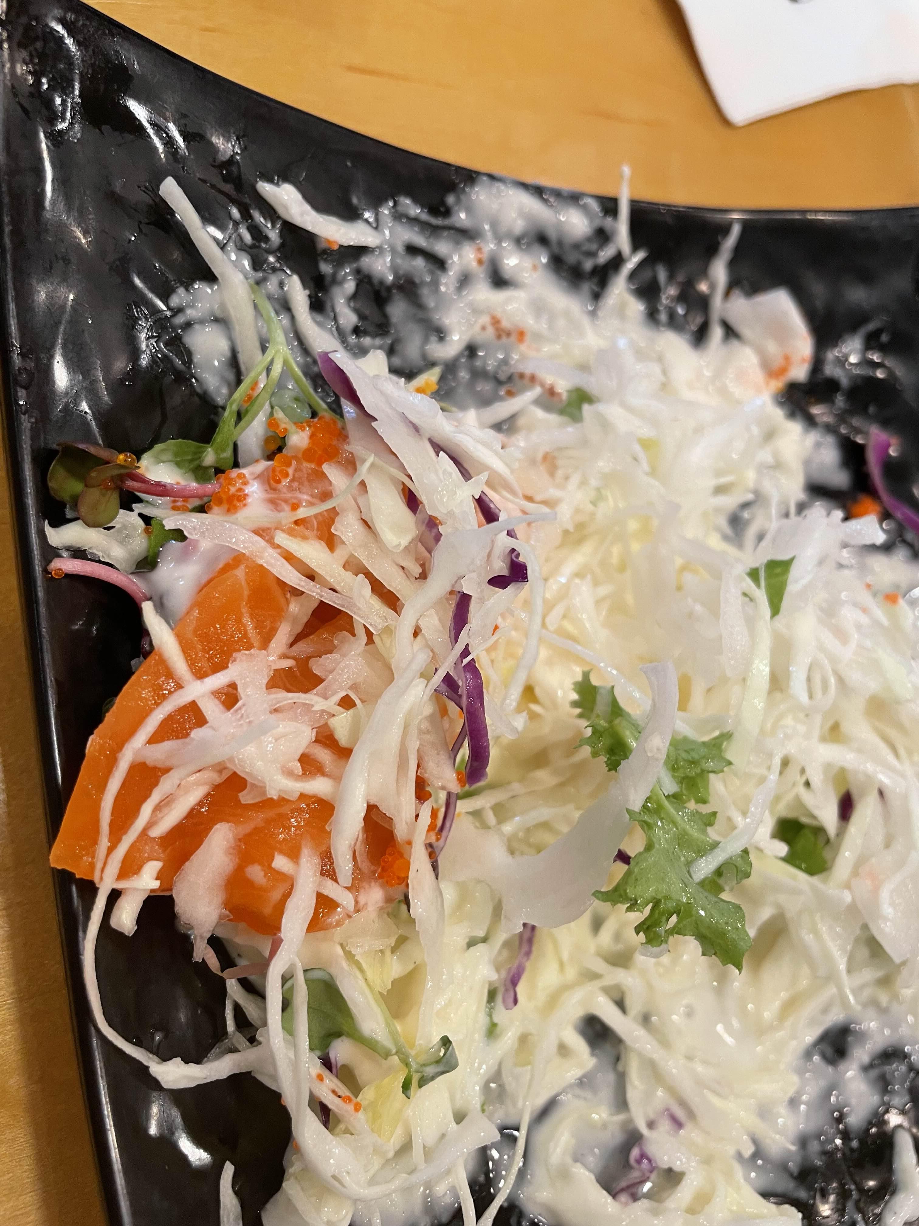 연어샐러드(나오자마자 섞어버려서 초기모습이 아쉽)