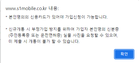 요금제를 확인했으면 준비할 것이 이제 신용카드와 신분증입니다. 준비해서 다음을 진행합니다.