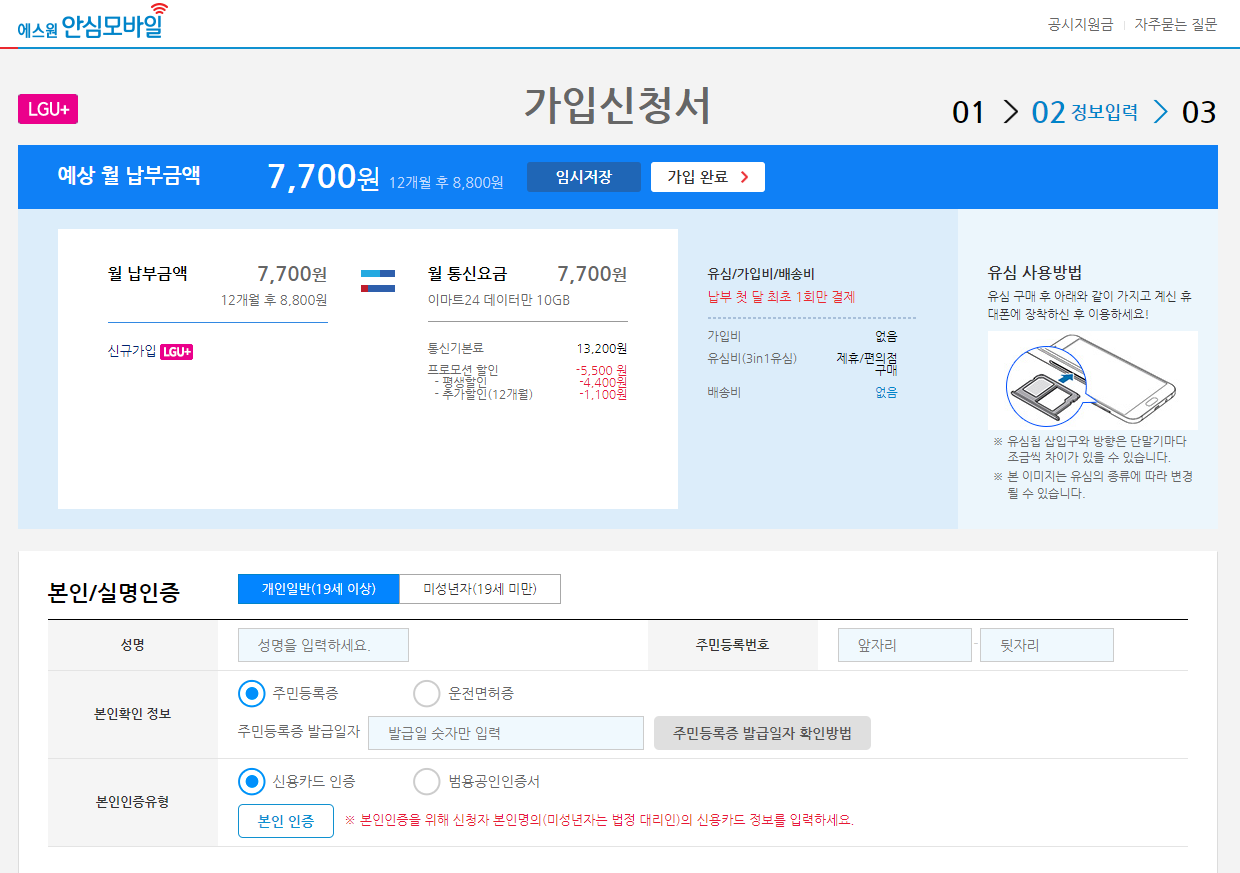 이제 유심이 준비되었으면, 신청해볼까요?
