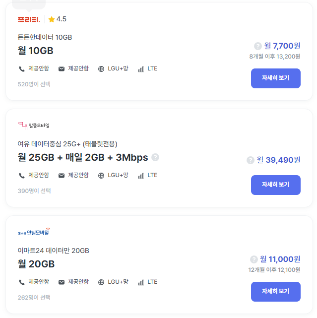 알뜰폰 요금제가 기본 3사 같은 용량의 요금제보다 반가격도 안되기 때문에 폰을 바꾸고 싶어하는 분들이 있을텐데요. 이러한 분들은 아이패드만 따로 요금제를 가입해도 3사에서 쓰던 요금제보다 훨씬 싸게 사용할 수 있습니다.