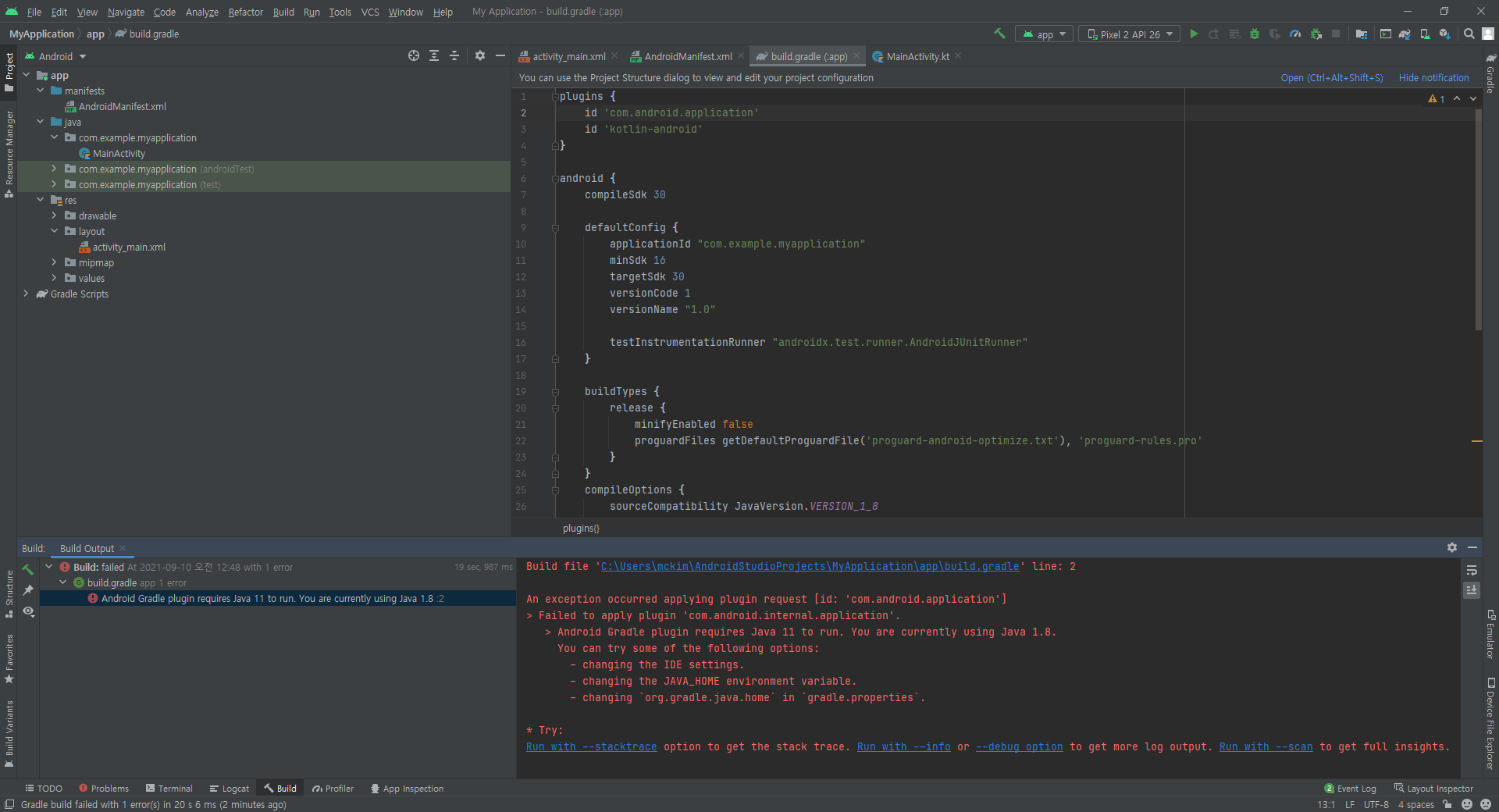 Build file 'C:\Users\mckim\AndroidStudioProjects\MyApplication\app\build.gradle' line: 2