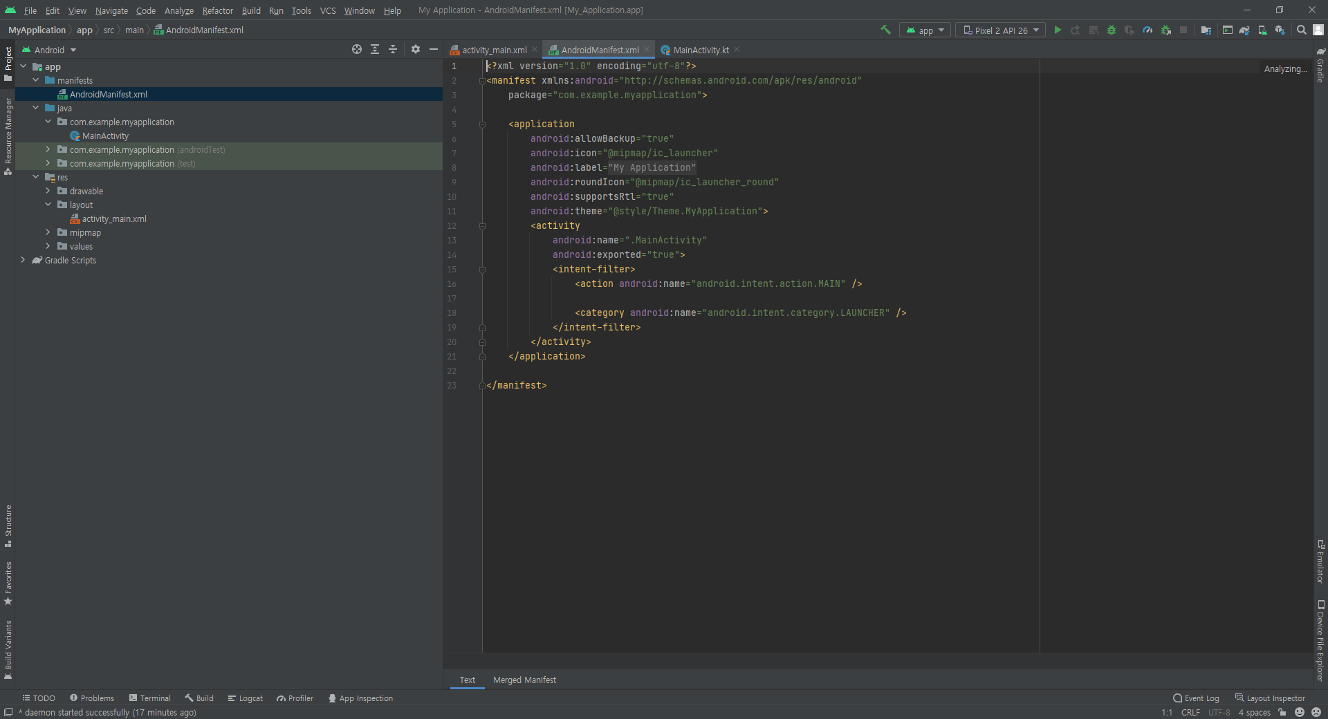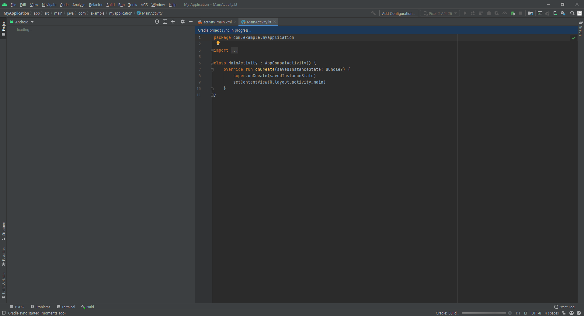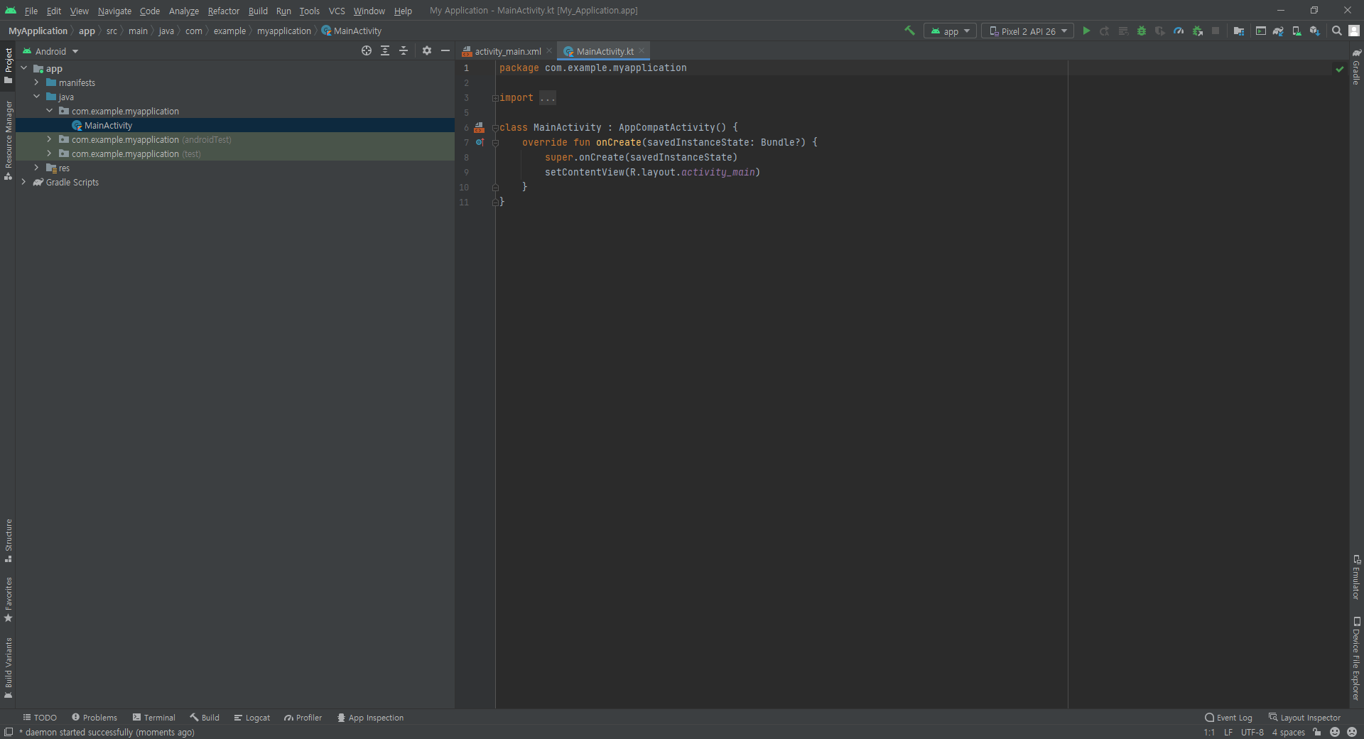 첫 화면은 MainActivity.kt 파일이 떠있는데요.