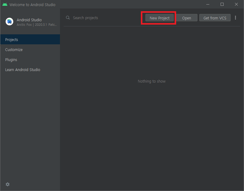 안드로이드 스튜디오를 실행하면 아래와 같이 나오죠?