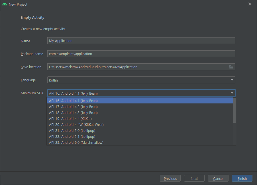 Minimum SDK는 최소 어느버전 이상부터 돌아갈 수 있다는 건데요.