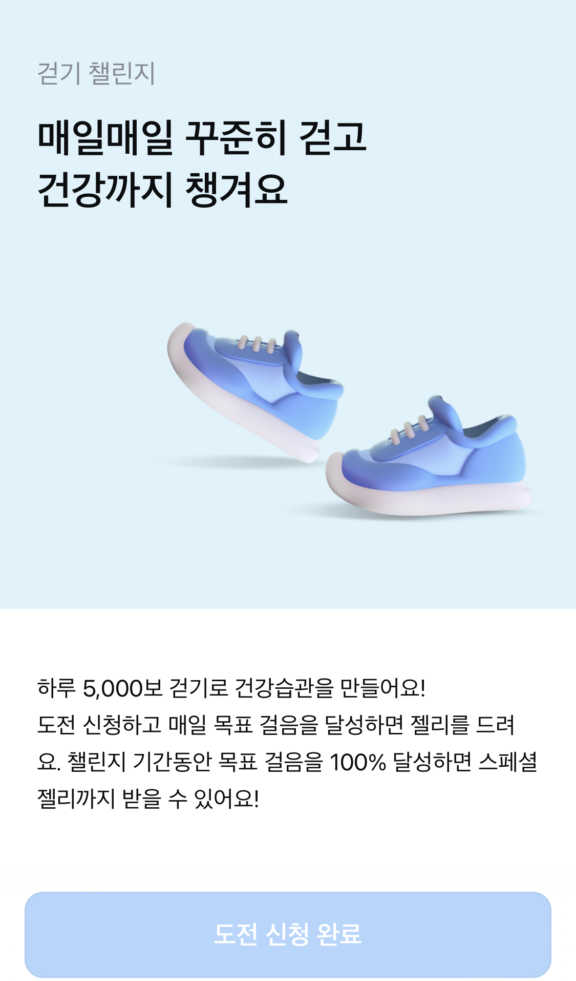 하루에 걸음수 5000을 채우면 기본젤리 하나를 선물로 받을 수 있습니다. 어느정도 거리를 걷는 분이라면 무난하게 달성할 수 있습니다.
