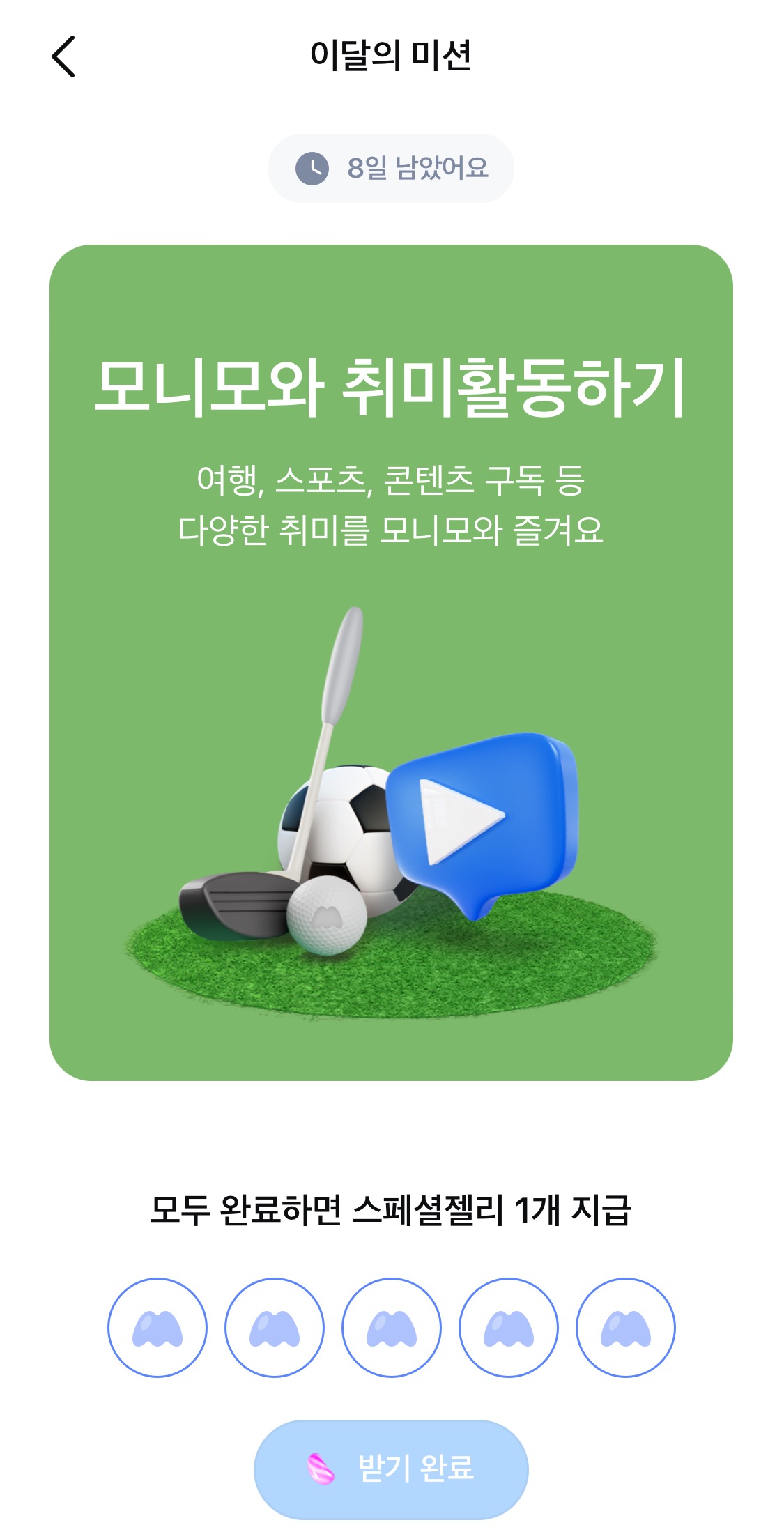 이밖에도 몇가지 더 추가할 수 있는 미션들이 있는데 저는 이정도만 진행하고 있습니다. 해당월에 젤리를 다 모니머니로 바꿔줘야 노력이 사라지지 않으니 꼭 바로바로 교환하길 바랍니다.