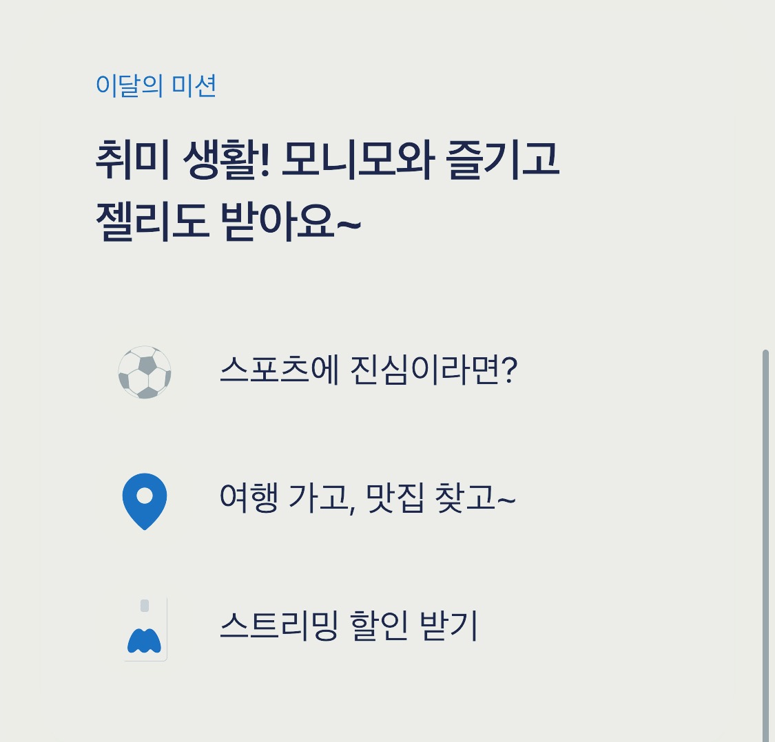 이밖에도 몇가지 더 추가할 수 있는 미션들이 있는데 저는 이정도만 진행하고 있습니다. 해당월에 젤리를 다 모니머니로 바꿔줘야 노력이 사라지지 않으니 꼭 바로바로 교환하길 바랍니다.