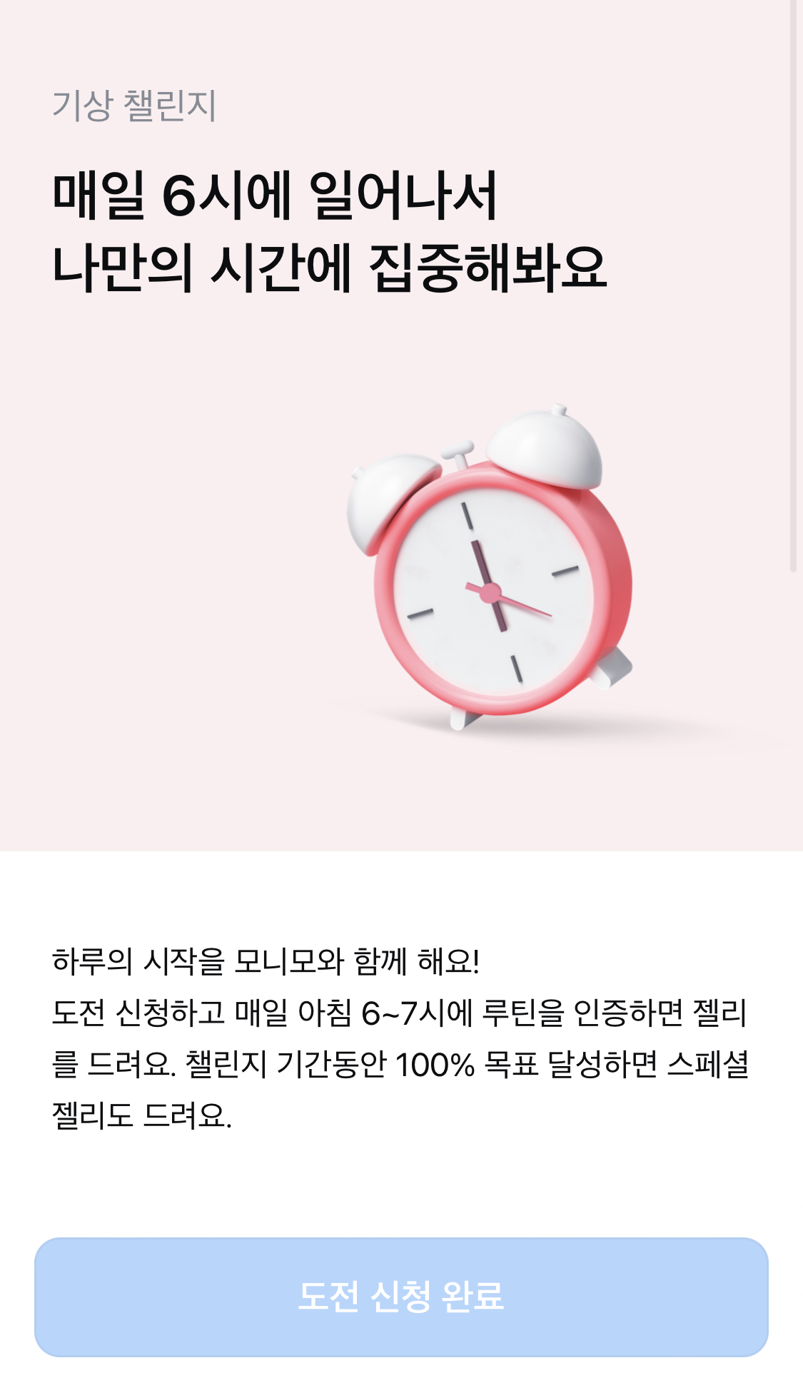 새벽 6시-7시 기상하여 앱에 들어가 인증하면 젤리를 받을 수 있습니다. 100% 달성하면 스페셜 젤리를 받을 수 있지요.