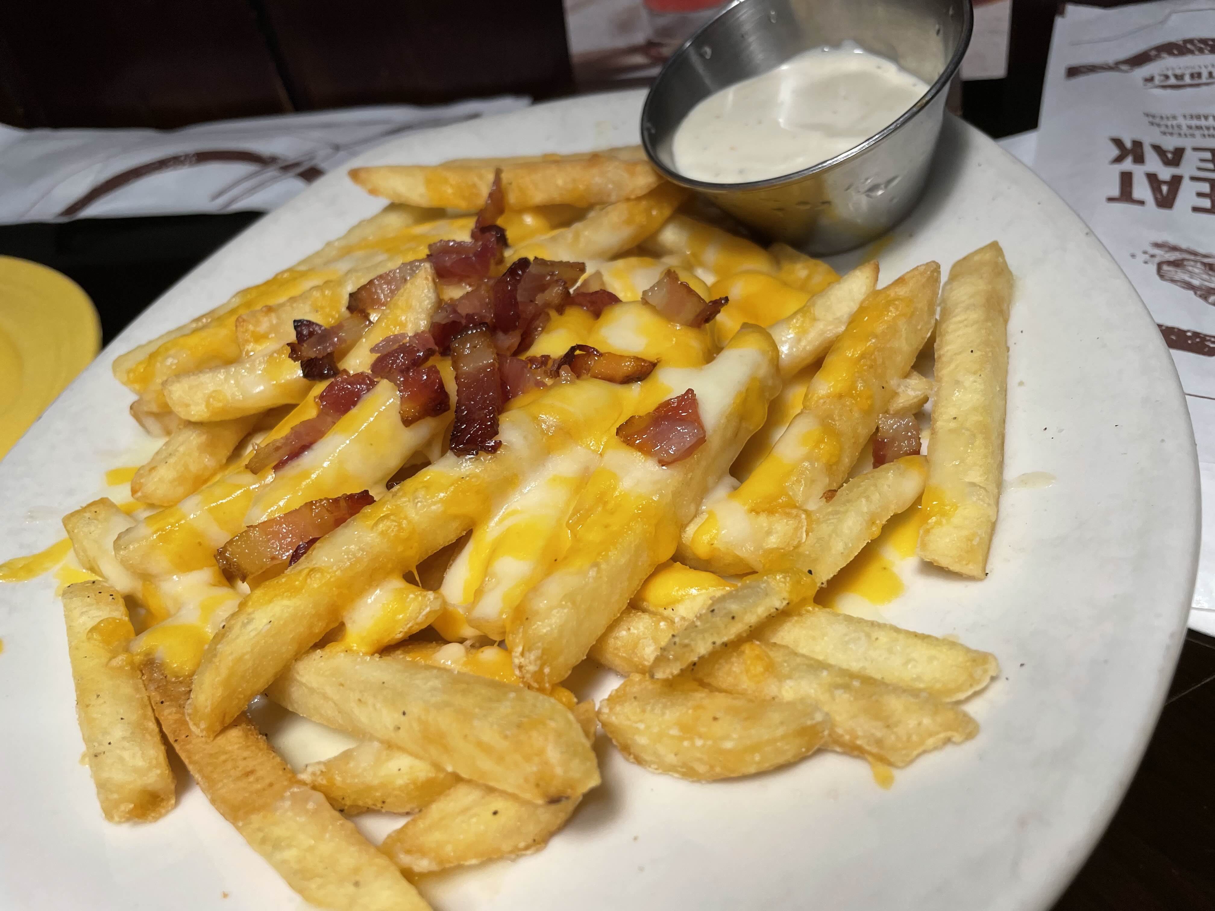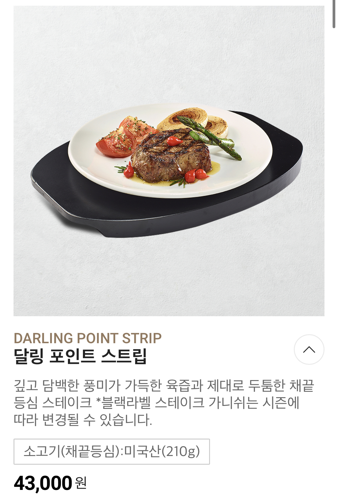 메뉴는 달링 포인트 스트립으로 추천 받았다. 블랙라벨 스테이크여서 더 부드럽다고 한다. 스테이크는 사이드가 있어서 감자튀김을 멜티드치즈 추가하면 오지치즈가 되어 나온다. 3900원이 들지만 오지치즈후라이즈만 시키는 것보다 가성비 좋으니 추천!!