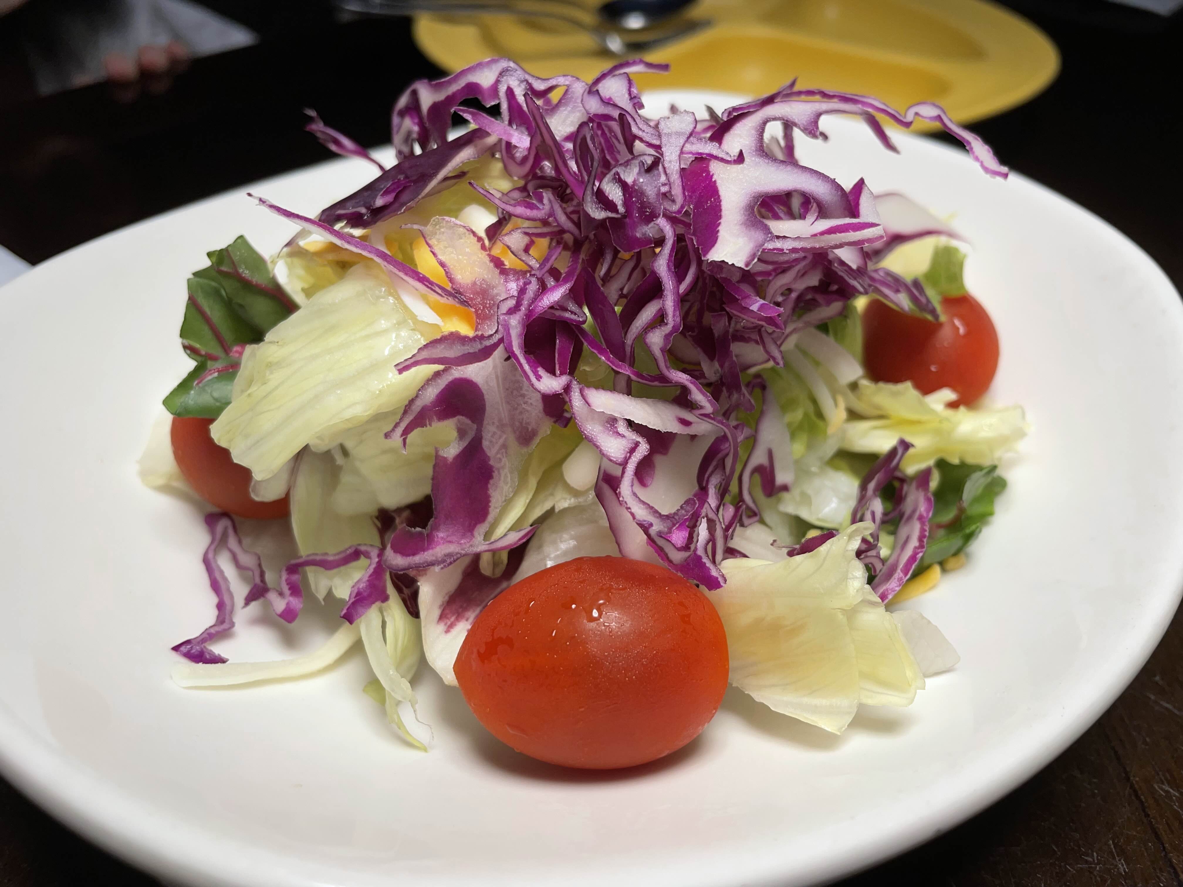 아래는 소스를 따로 달라한 가든 샐러드. 스프 하나를 포기하고 샐러드로 바꿨다. 요 방울토마토를 둘째가 다 먹었다.
