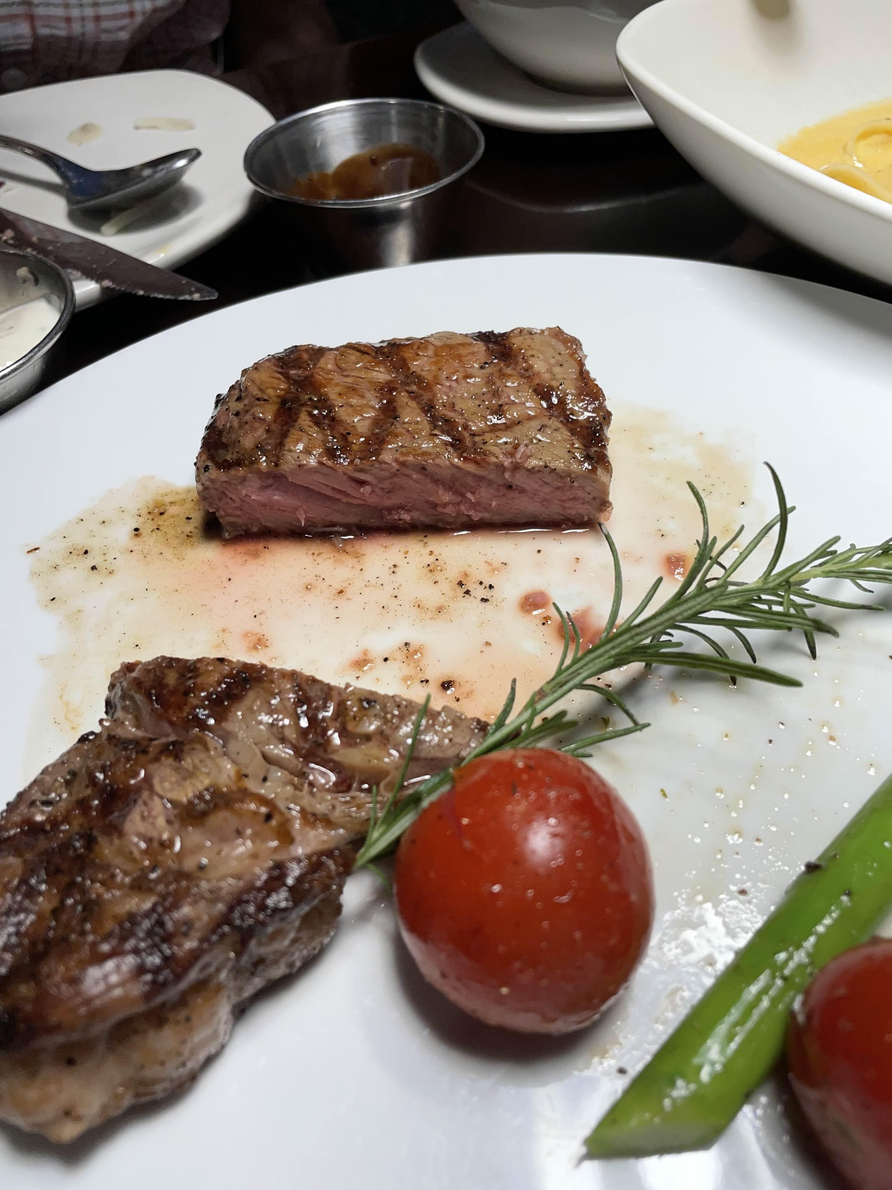 미디움으로 시킨 스테이크. 애기들을 걱정하는 서버에게 우리 부부만 먹을거라고 괜찮다고 얘기했다.