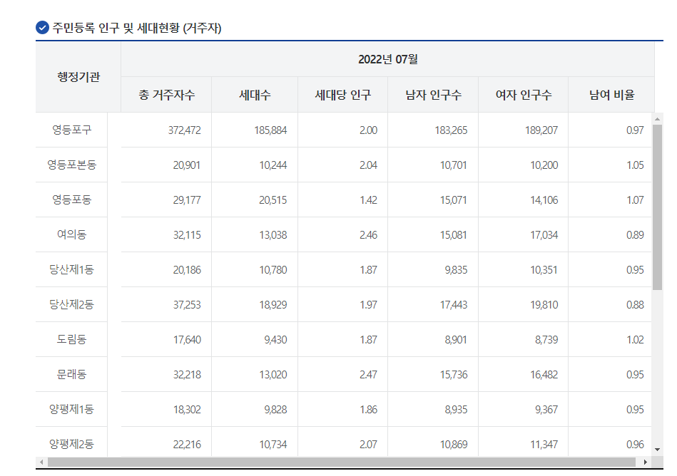이렇게 어느 연령대가 많이 거주하는지, 혹은 어느 지역에 사람이 많이 사는지 등을 확인해볼 수 있겠죠?