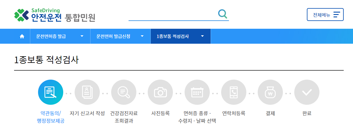1종보통 적성검사는 아래와 같은 순서로 진행됩니다.