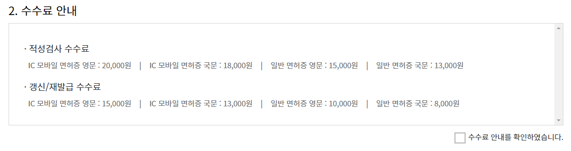 수수료 안내는 1종보통 기준의 수수료 안내입니다.
