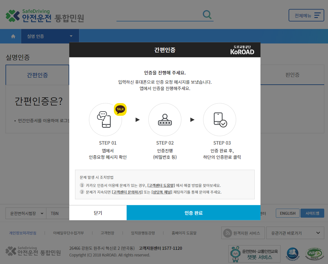 도로교통공단 안전운전 통합민원 사이트에 접속하여 신청합니다.