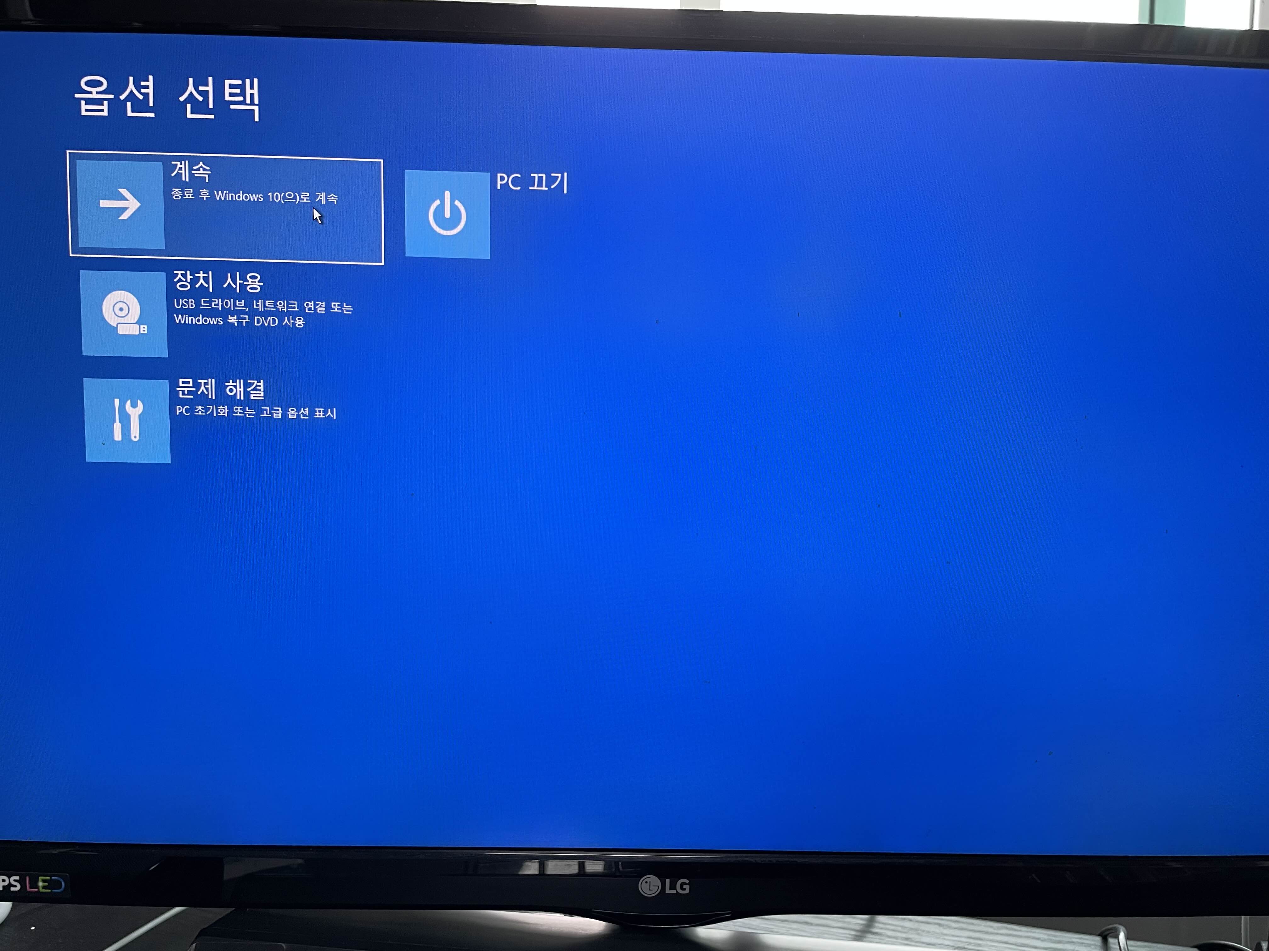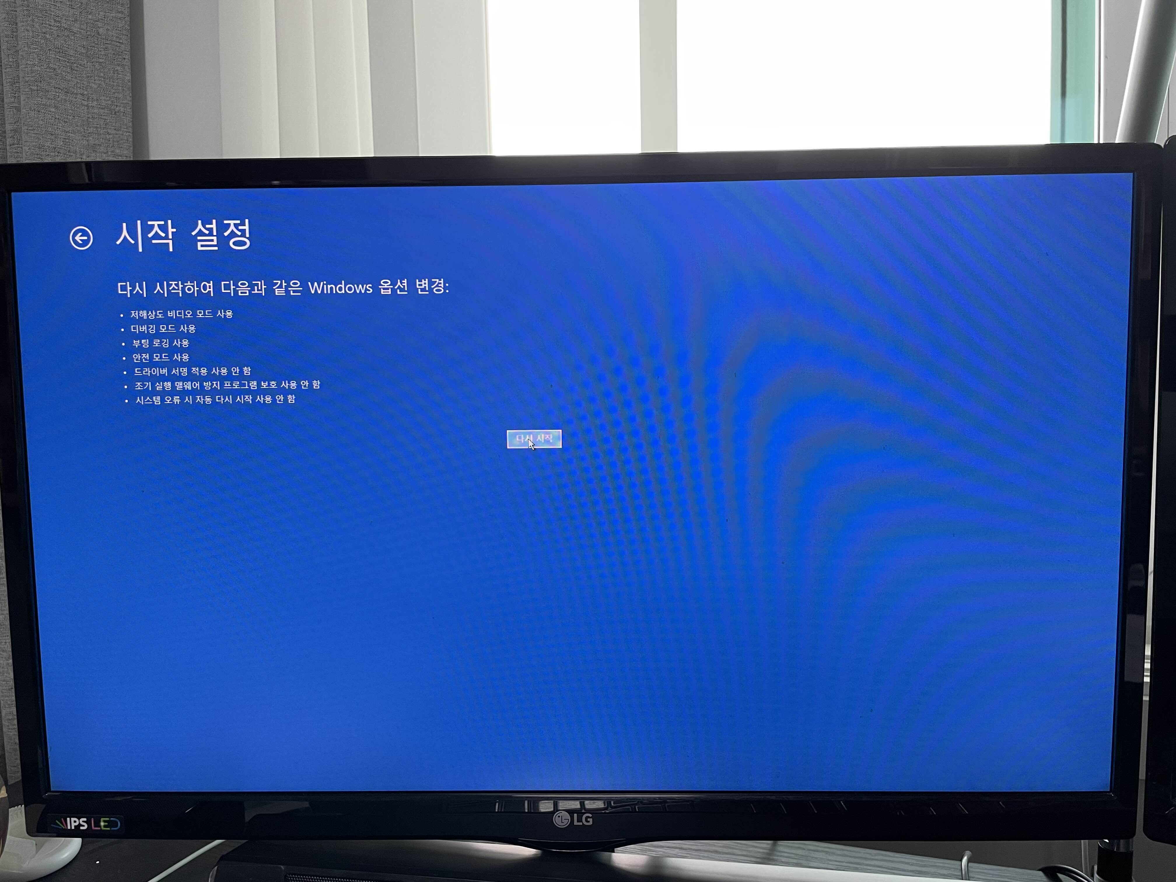 이제 다시 시작을 눌러 부팅합니다.