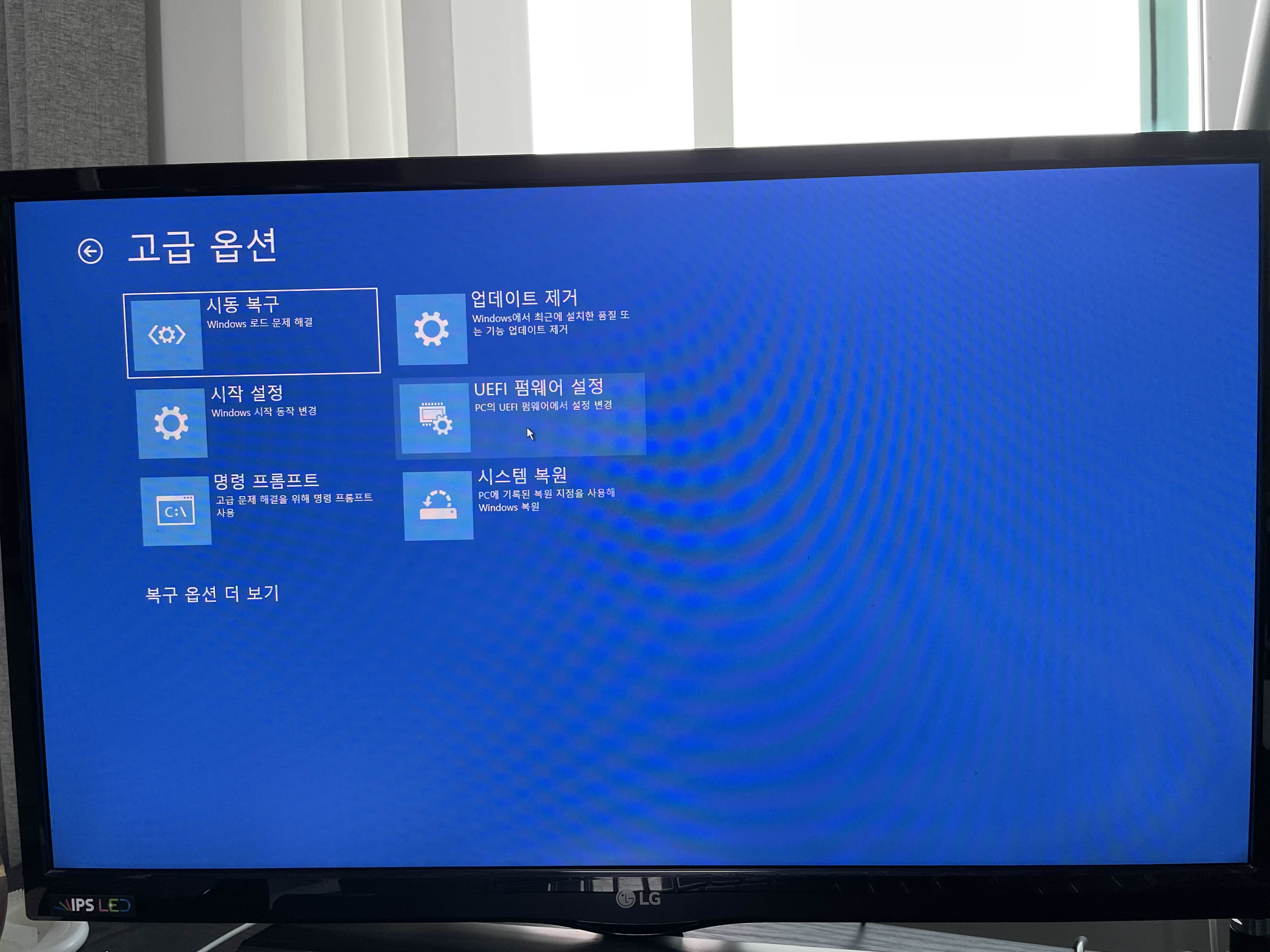 고급 복구 옵션 확인으로 진입합니다.