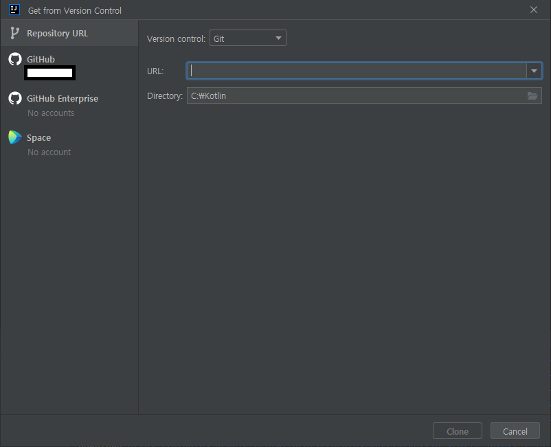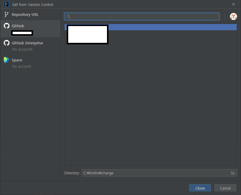 이제 왼쪽에 보면 Github 메뉴에서 github에 있는 repository를 선택하여 clone할 수 있습니다.