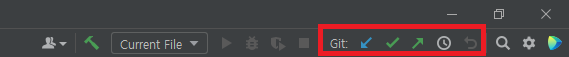 각각 Update Project, Commit, Push, Show History, Rollback 입니다.