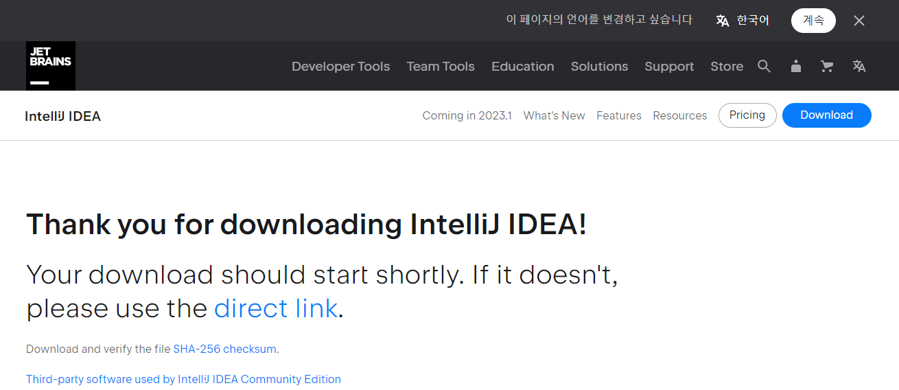 아래 JET BRAINS 홈페이지에서 다운로드에 들어가면 Ultimate 버전과 Community 버전이 있습니다.