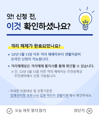 지원금은 격리 해제일(격리기간이 종료된 날의 익일)로부터 90일 이내 신청해야합니다.