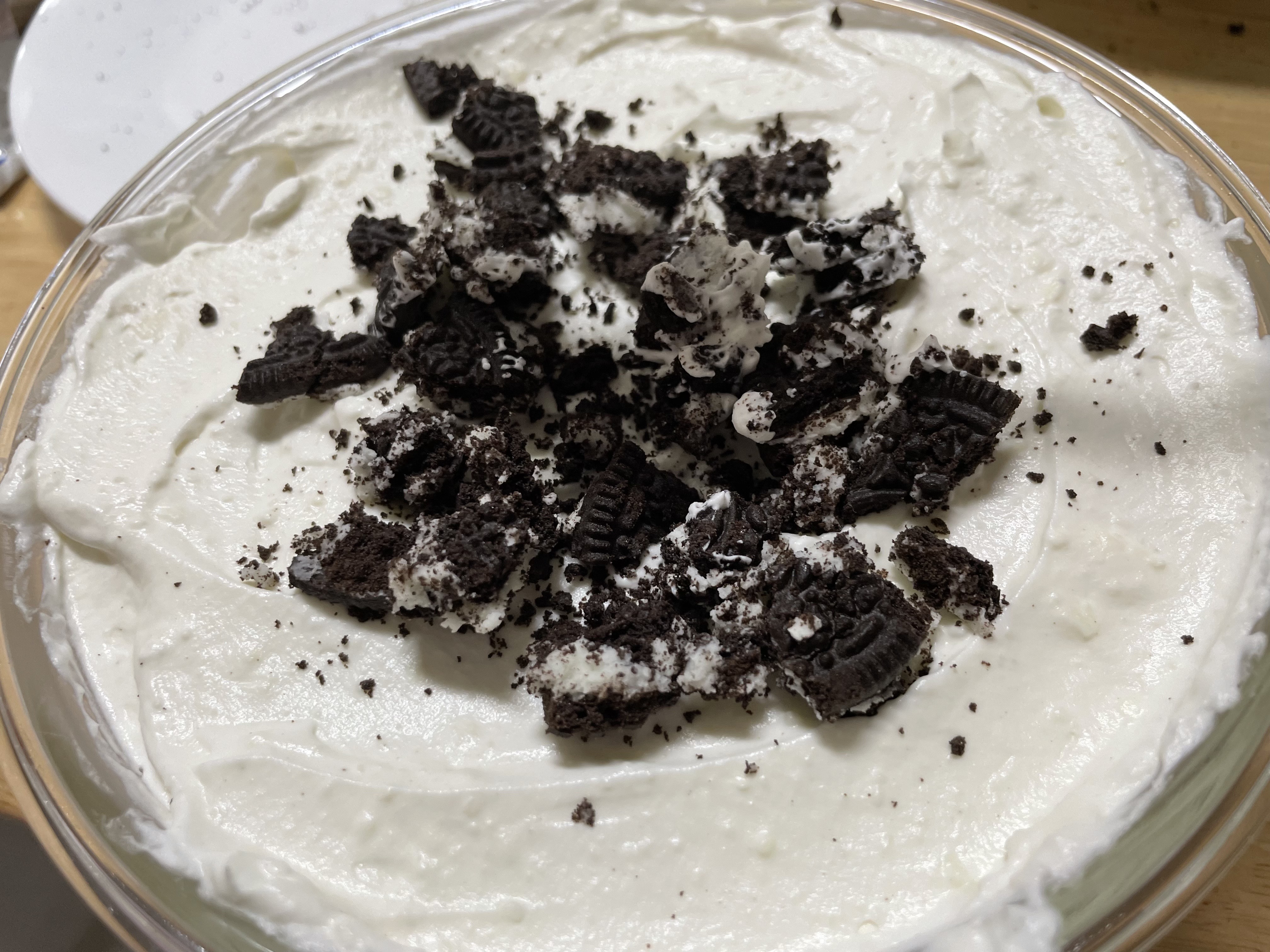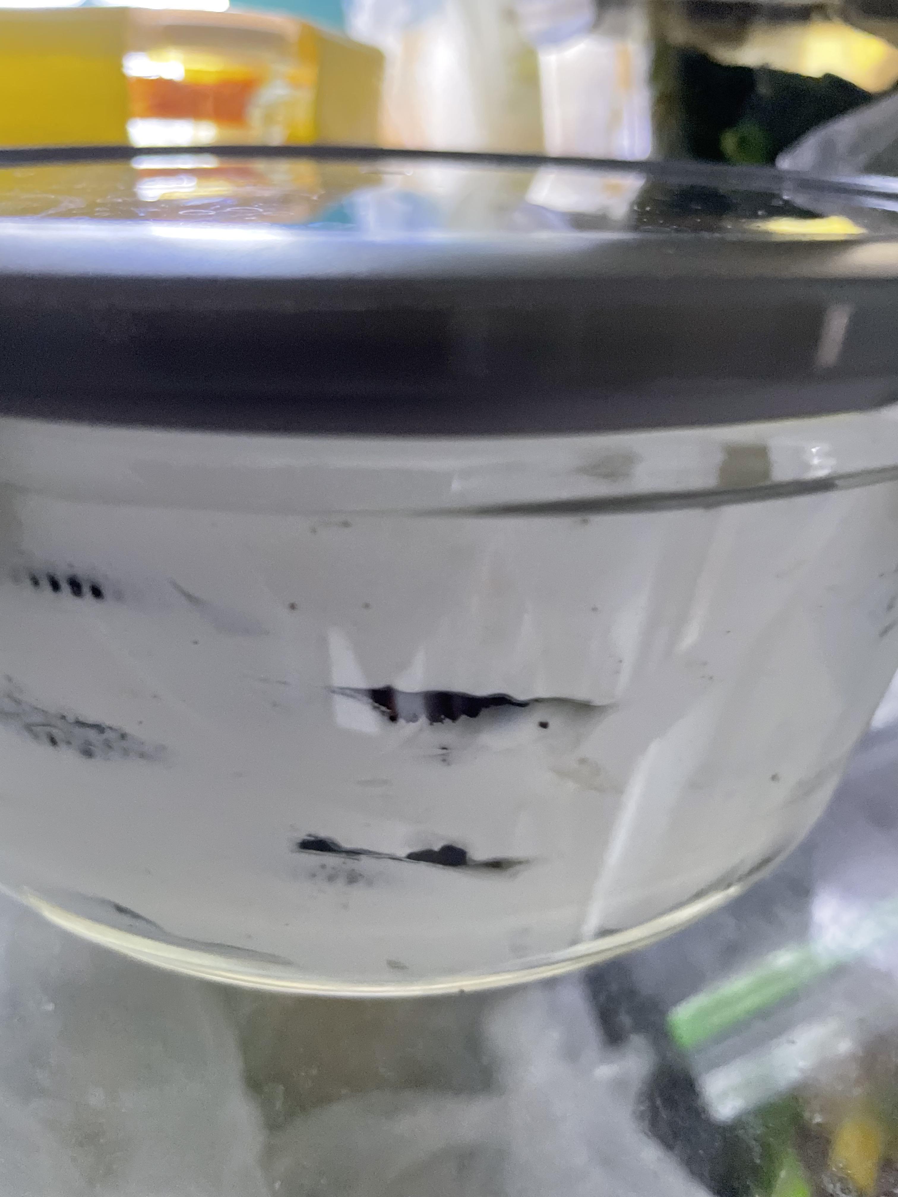 이제 크림과 오레오 과자가 촉촉하게 스며들때까지 기다려야합니다. 그래서 냉장고 냉장실에 하루정도 넣어두면 완성!