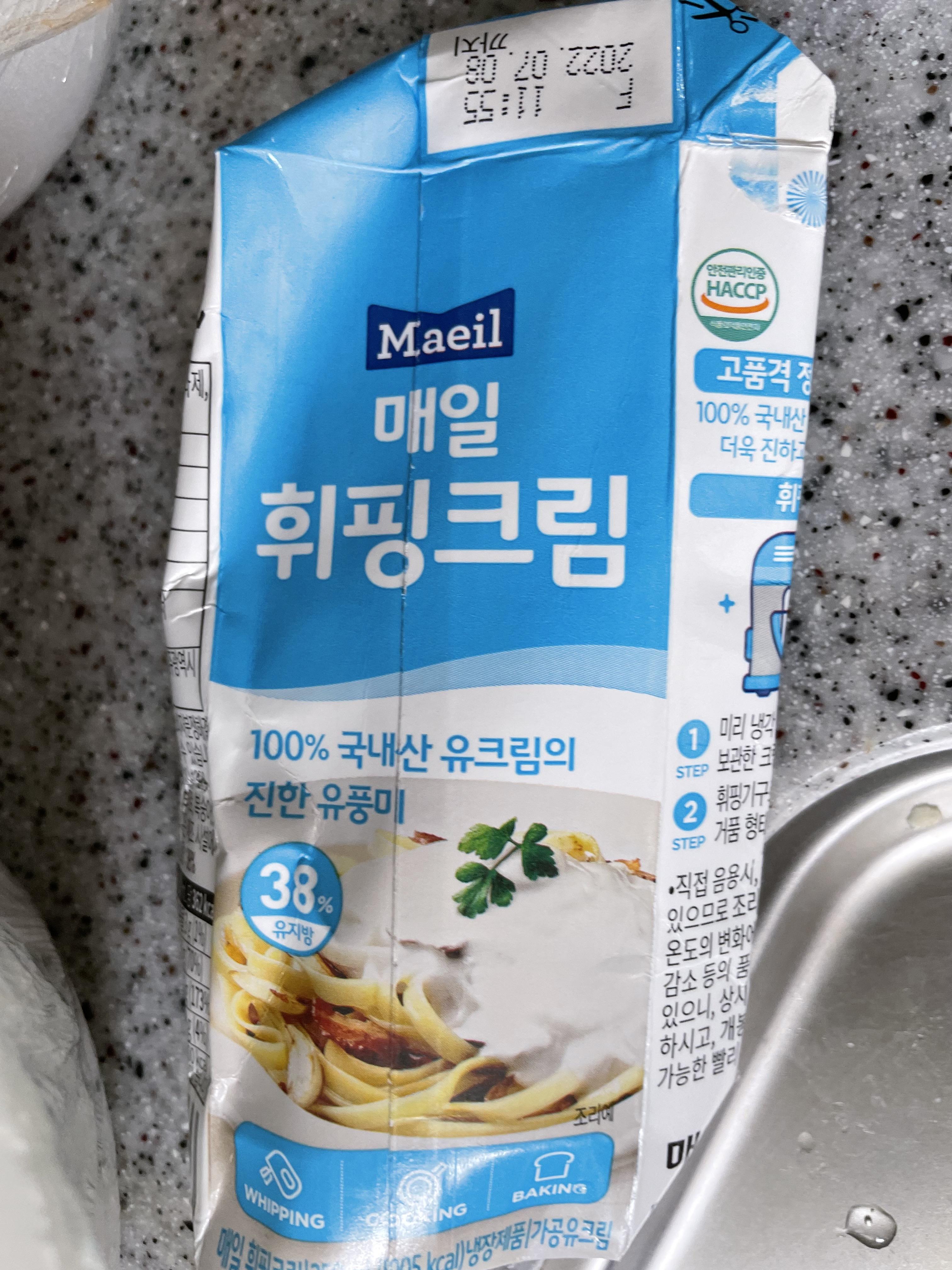 조리도구는 크림을 만들 보울과 크림을 만들 거품기(왠만하면 핸드믹서), 숟가락, 담을 그릇정도가 필요하겠네요.