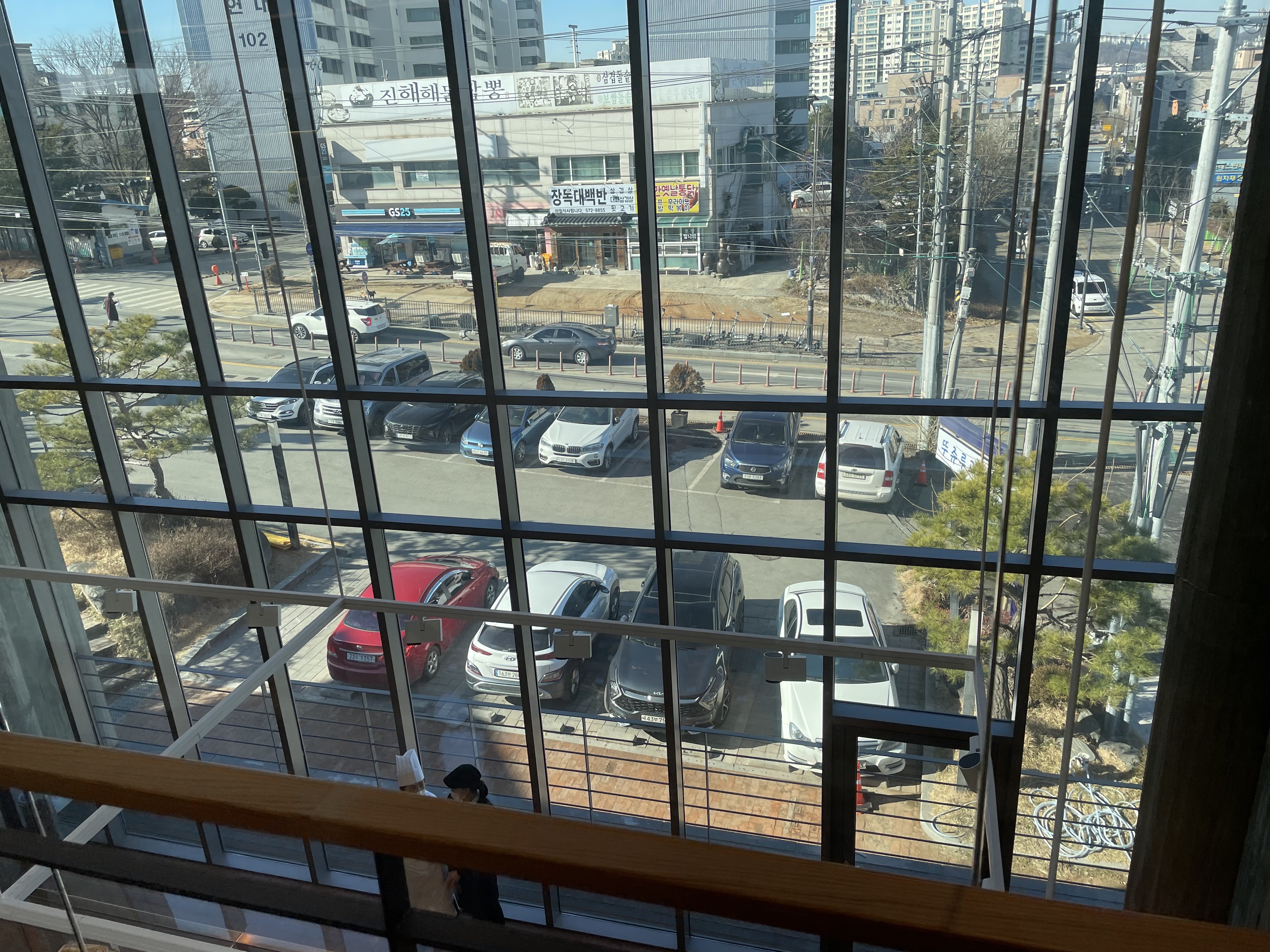 2층 카페에서 찍은 주차장 전경입니다. 뒤쪽으로 더 있는지는 모르겠어요~