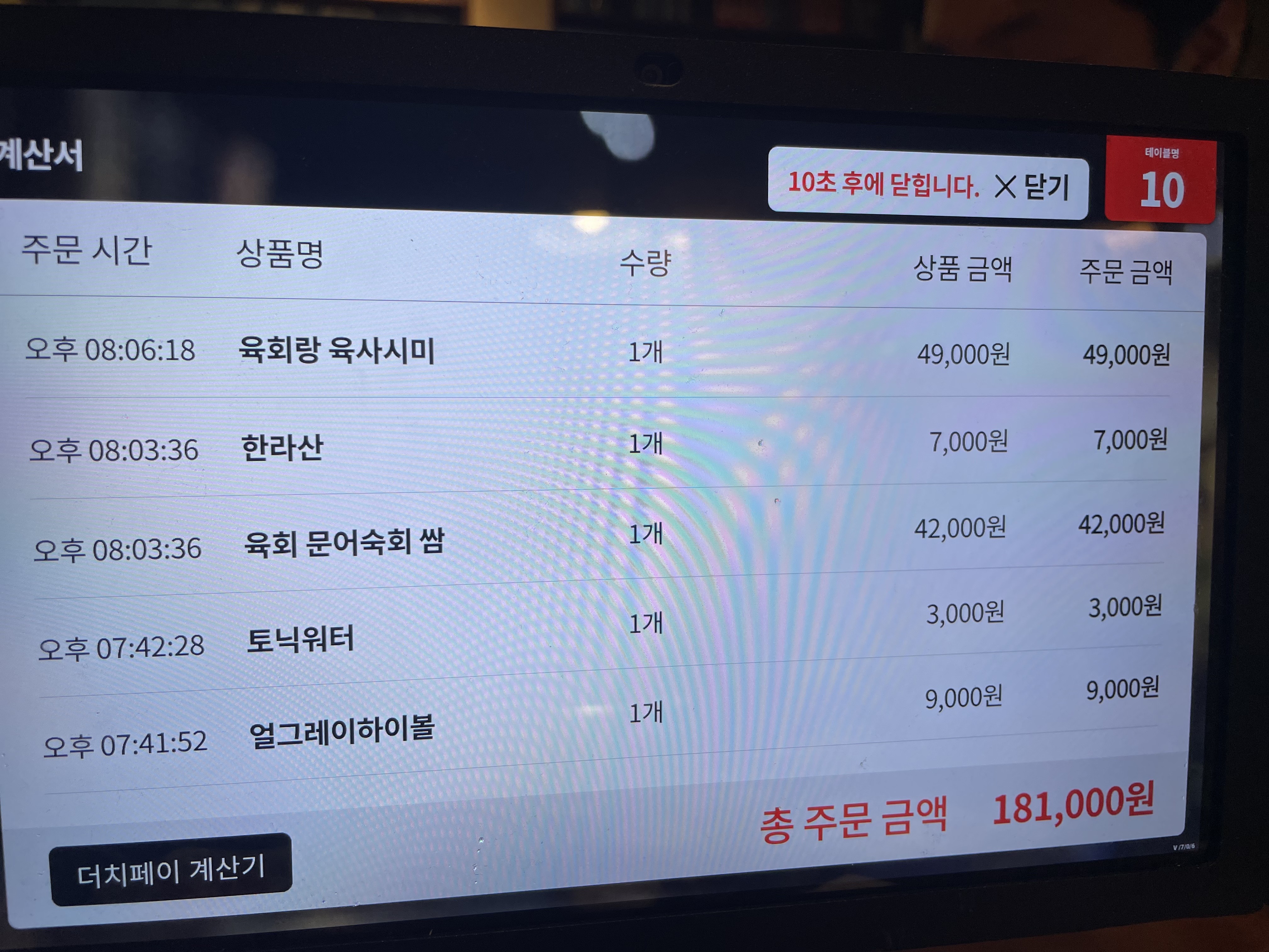 테이블마다 주문은 키오스크로 할 수 있게 되어 있습니다.
