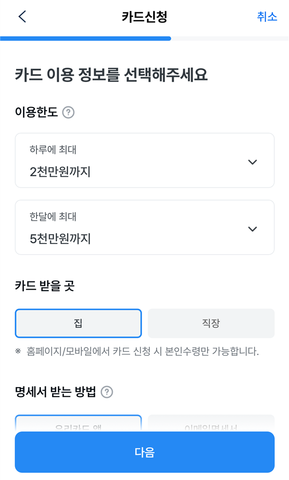 - 카드발급 신청 예시