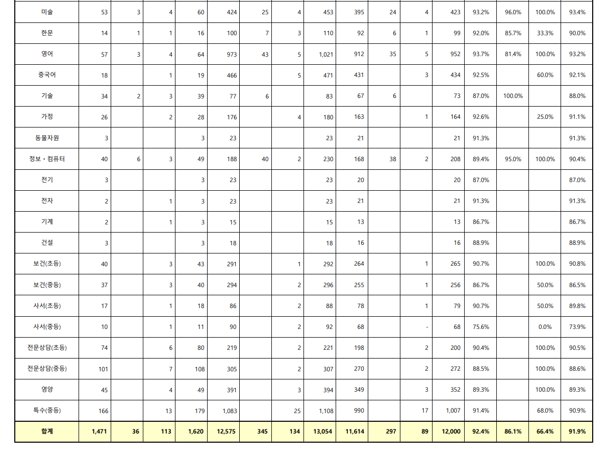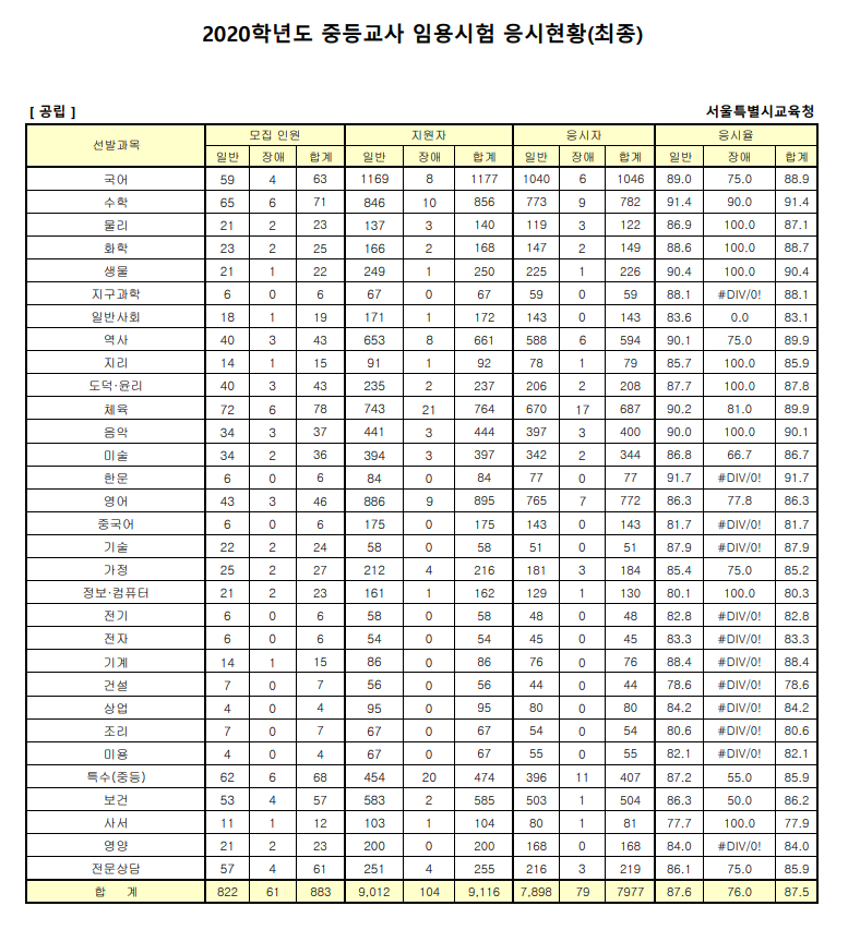 2020학년도 중등교사 임용시험 응시현황