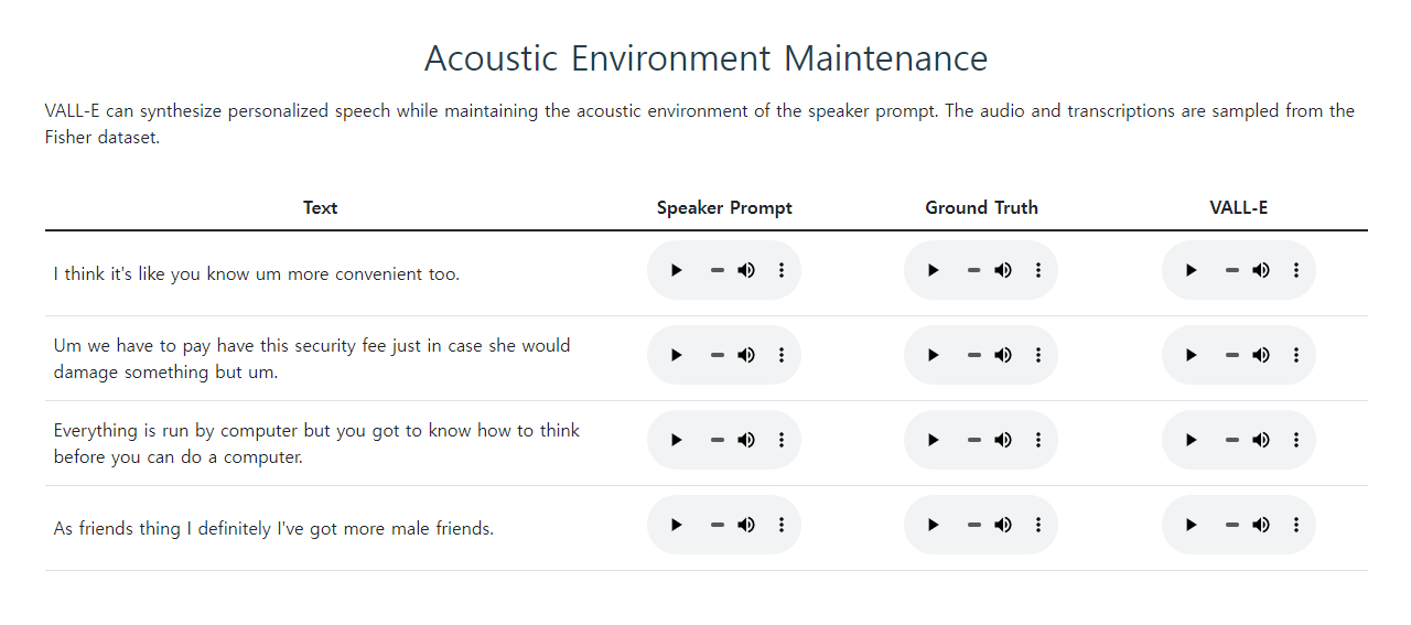 텍스트를 입력해놓고, 3초 샘플 음성을 추가하면 이에 맞게 새로운 AI가 생성한 오디오가 출력되는 구조입니다.