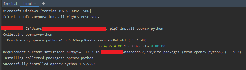 뭐 pip 버전업데이트가 필요하다 뭐하다해서 설치했는데 cv2는 설치되지 않았다.