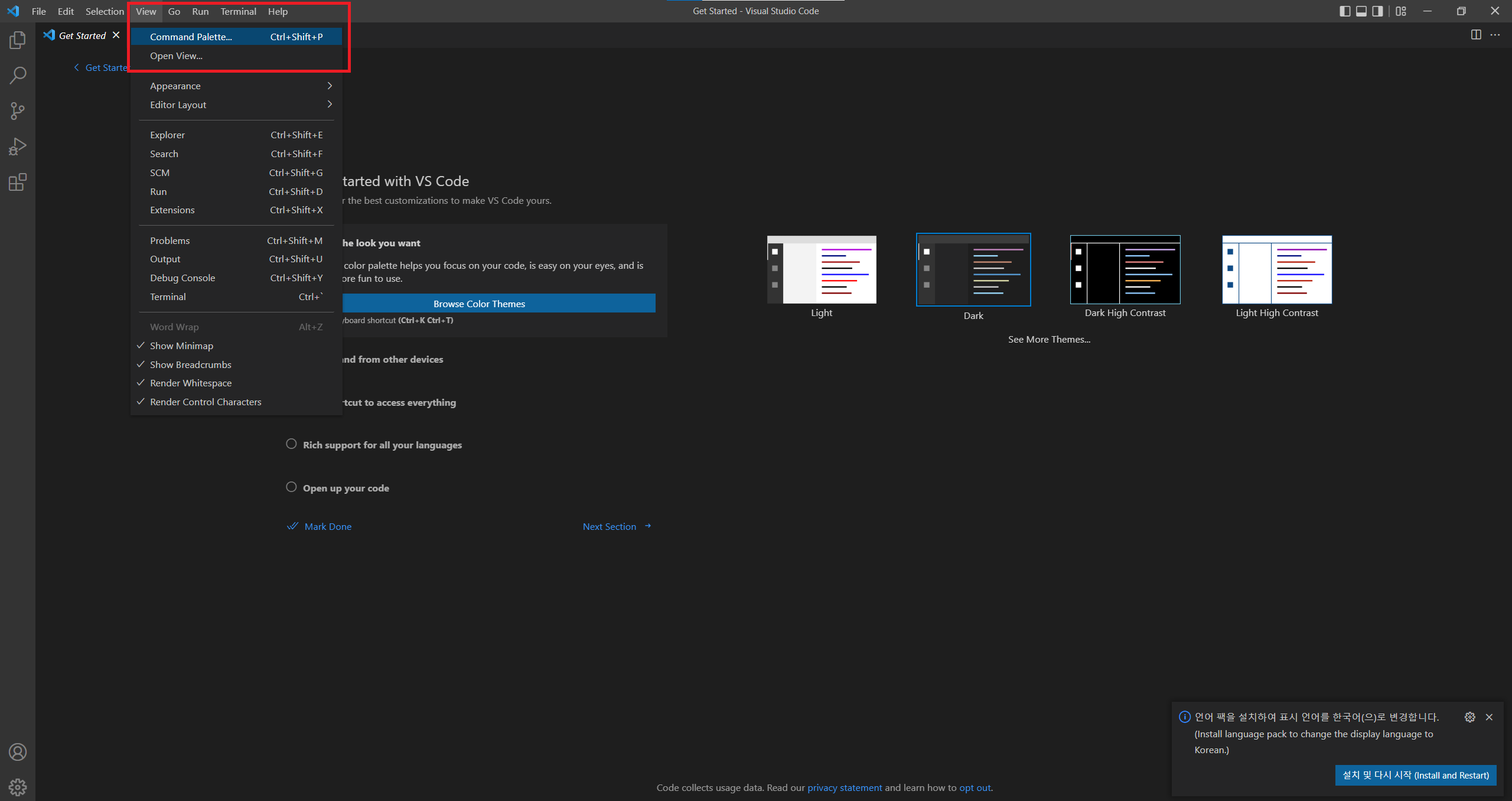 (커맨드 파레트 단축키 : Ctrl + Shift + p)