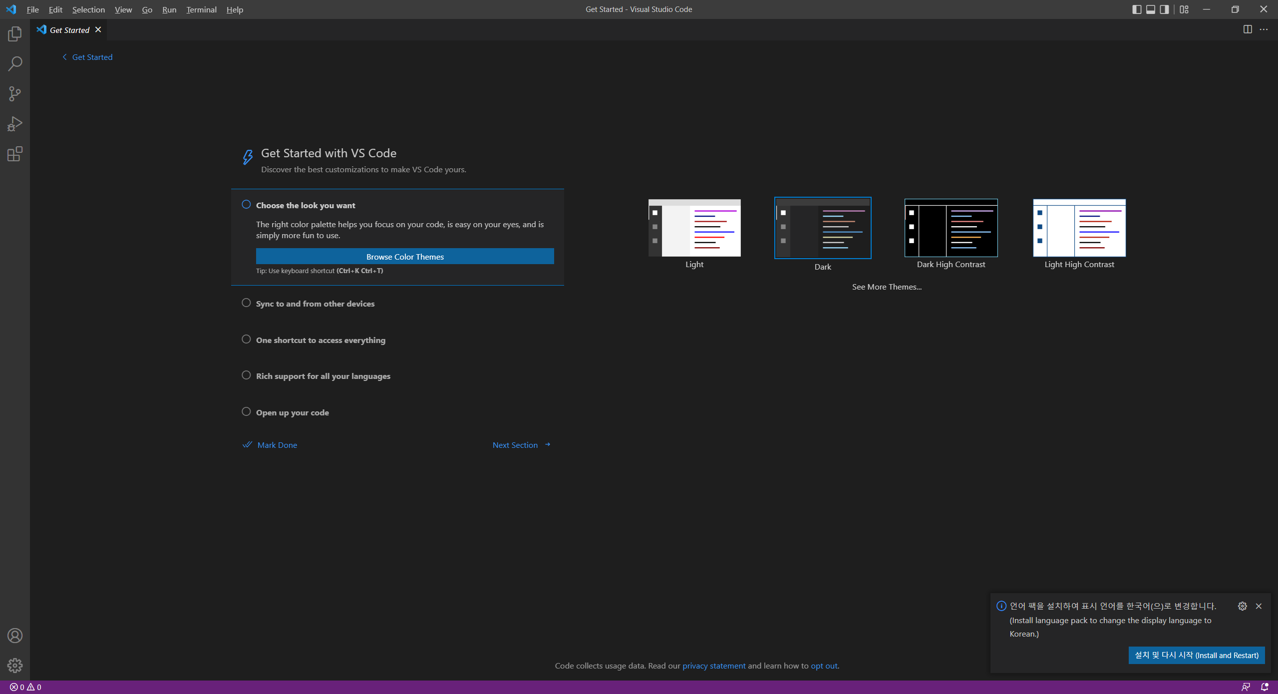 설치가 끝나면 바로 Visual Studio Code 실행을 체크하여 종료하도록 하죠.