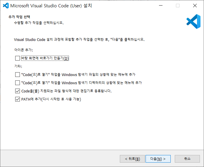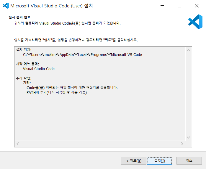 크롬이기 때문에 이렇게 좌측 하단부에 VSCodeUserSetup....exe 로 표시된 파일 다운로드를 볼 수 있습니다.
