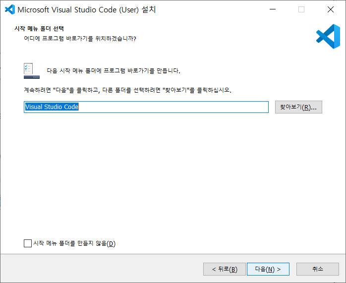 시작메뉴 바로가기, 다음으로 넘어가면됩니다.