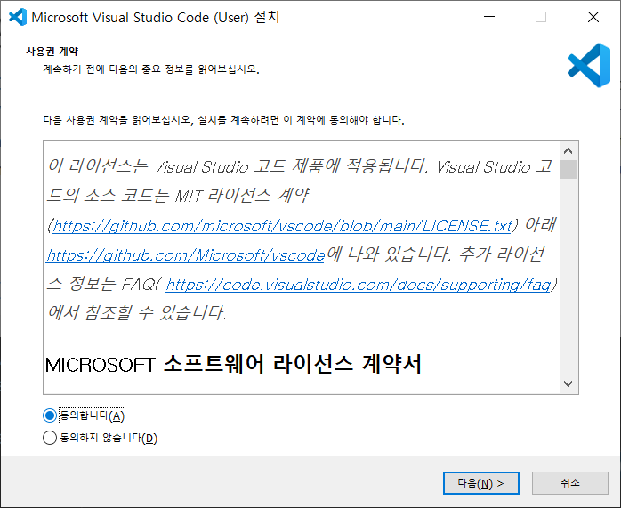 이 파일을 실행하면 아래 라이선스 계약서부터 보실 수 있습니다.