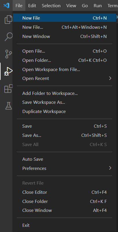 이제 직접 코드를 짜서 실행하는것까지 봐야겠죠? 파일에서 New File을 눌러주면 Untitled-1 라는 파일이 생성됩니다. 이 파일을 보면 Select a Language 라는 문구를 볼 수 있습니다. 이걸 클릭해서 Python으로 바꿔줘보죠.