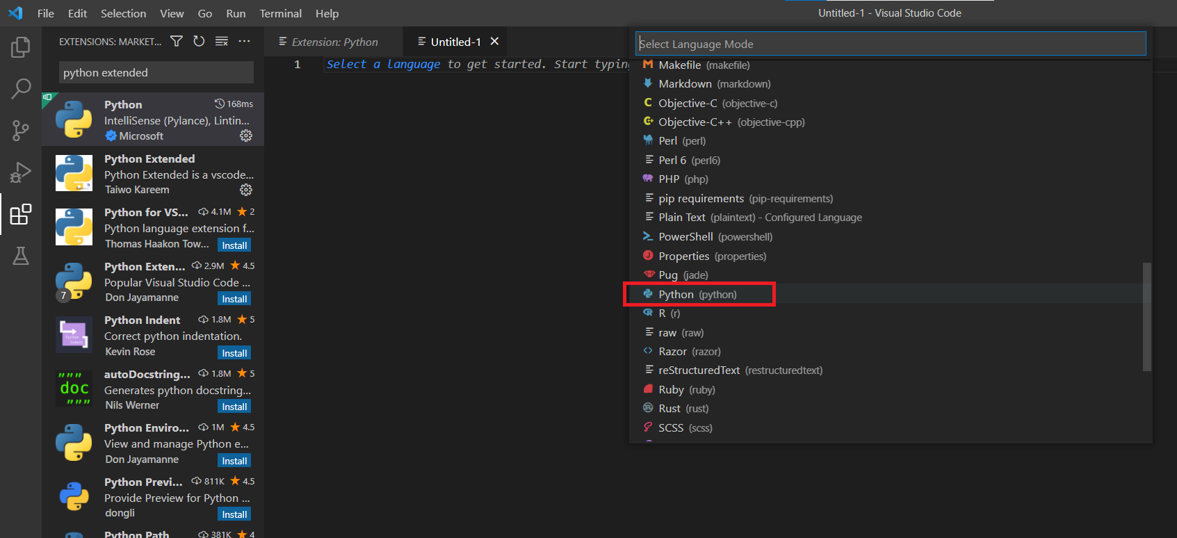 먼저 파이썬을 써야하니 설치해보도록 하죠. python을 검색하면 이와 관련된 Extensions가 쭉 나열됩니다.