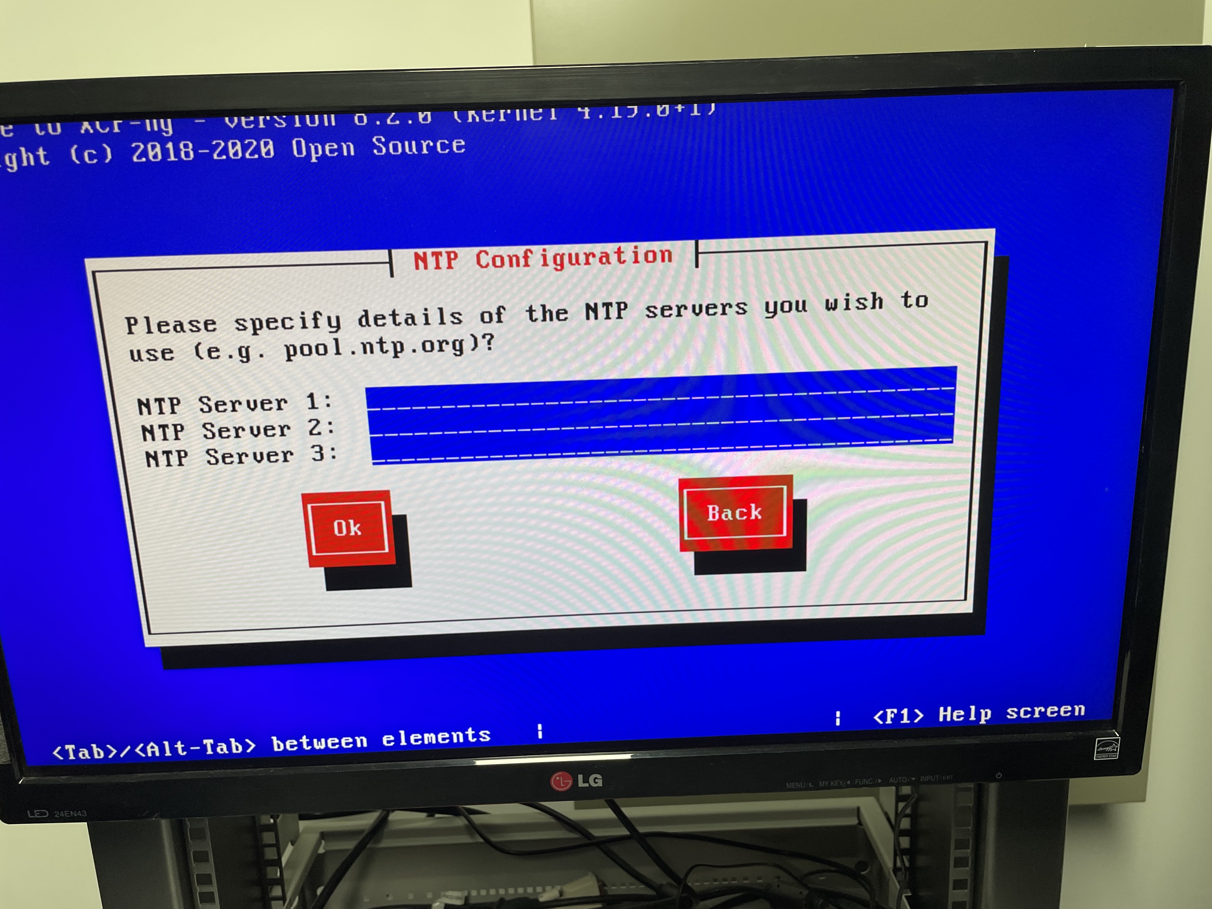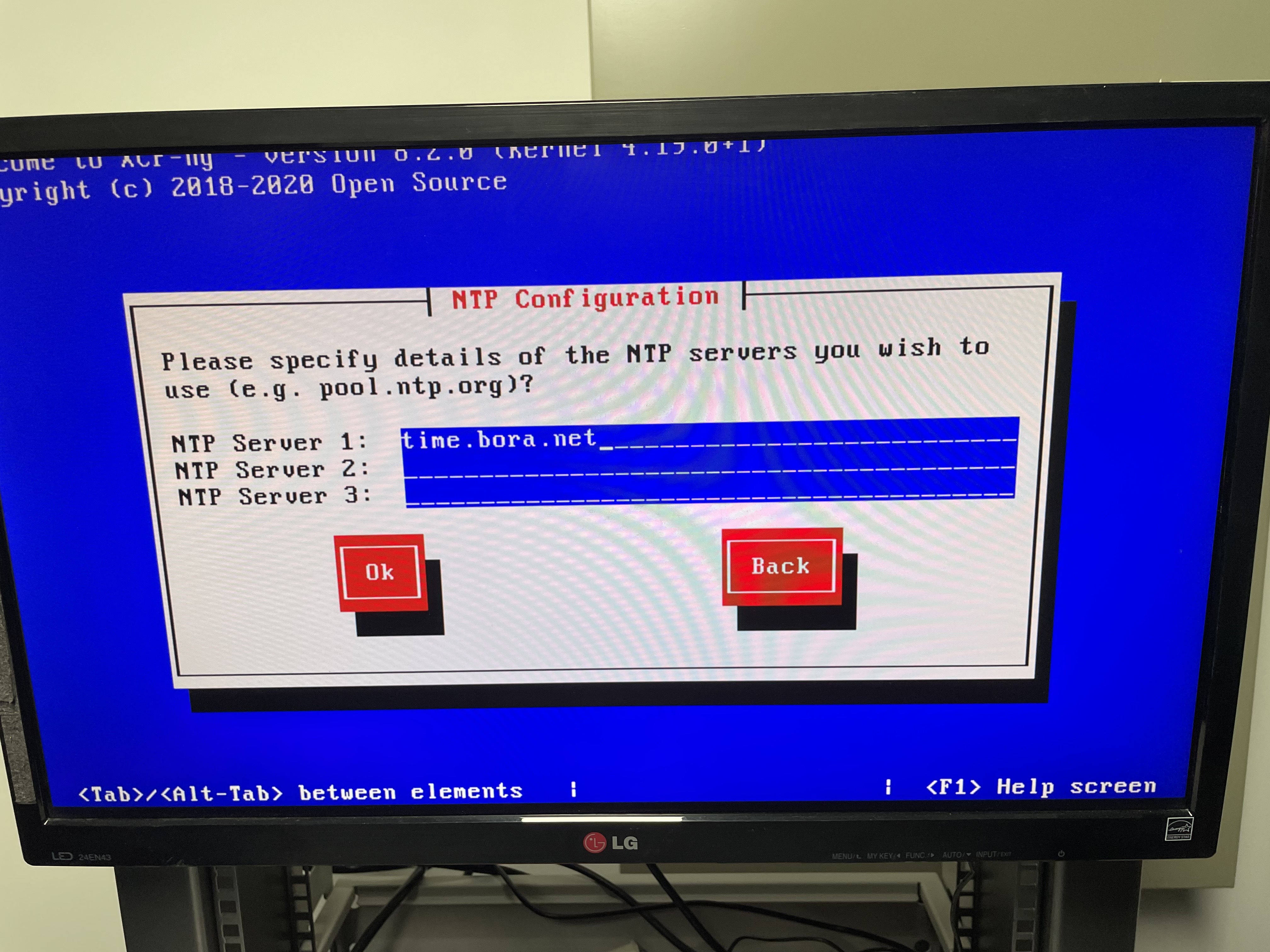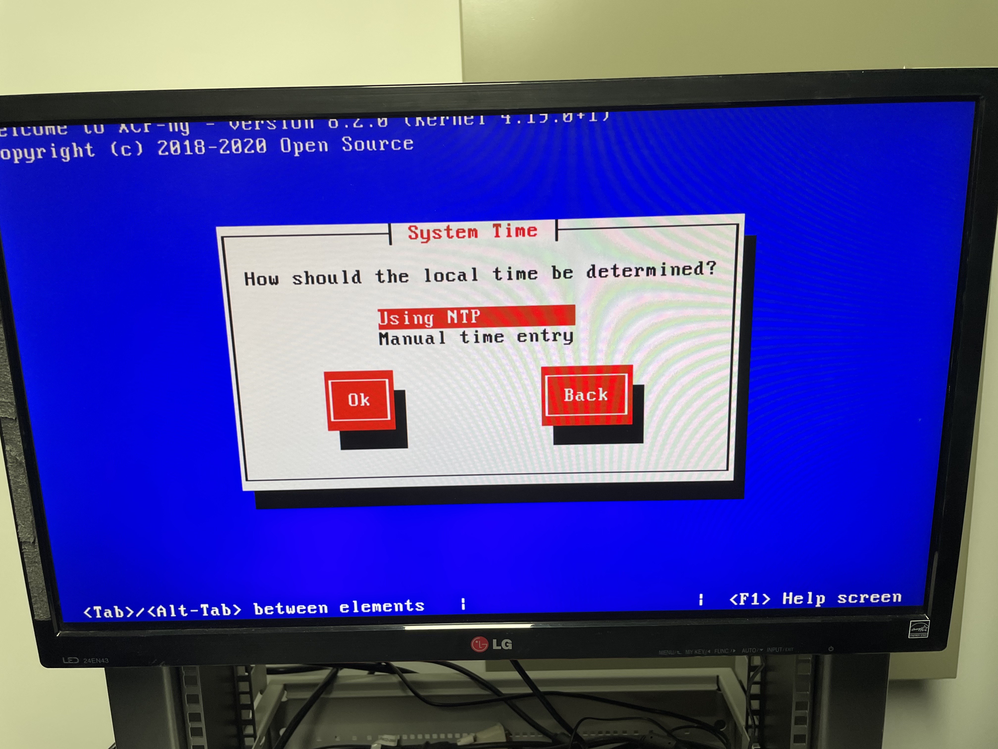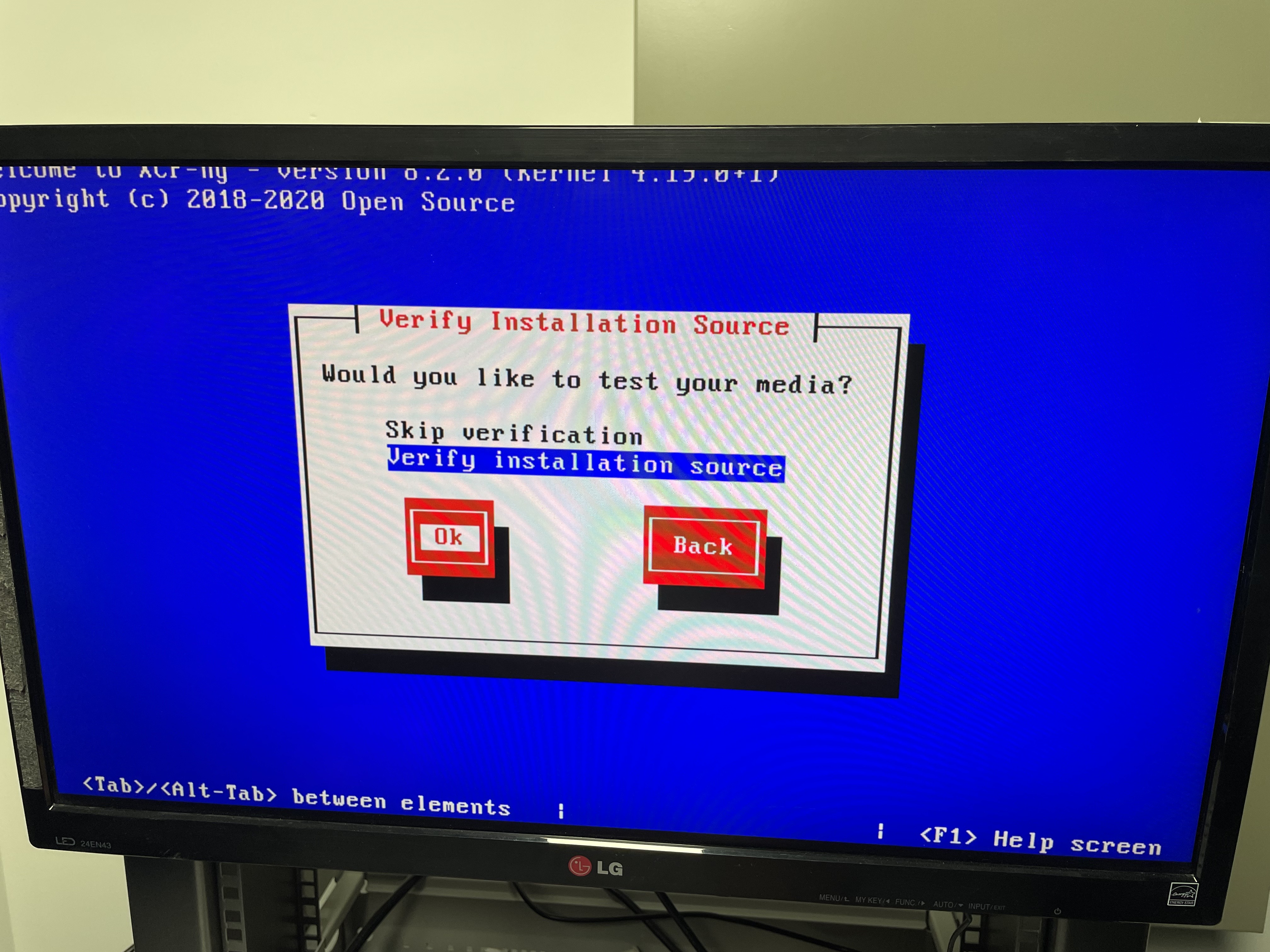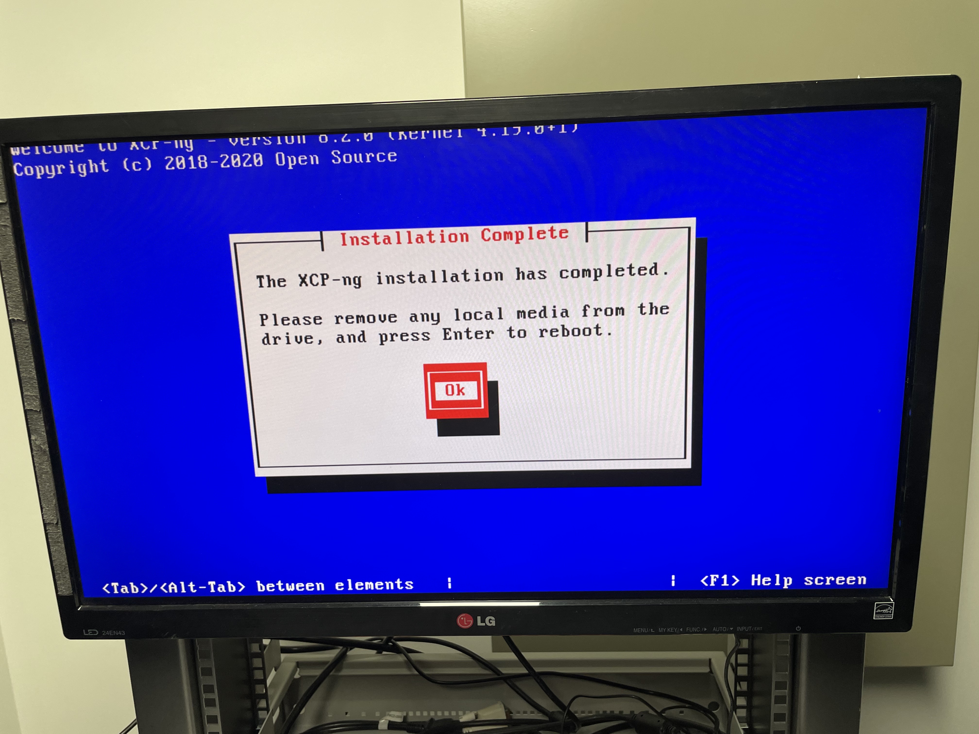 처음 실행하면 XCP-ng Setup이 나타납니다. Ok를 누릅니다.