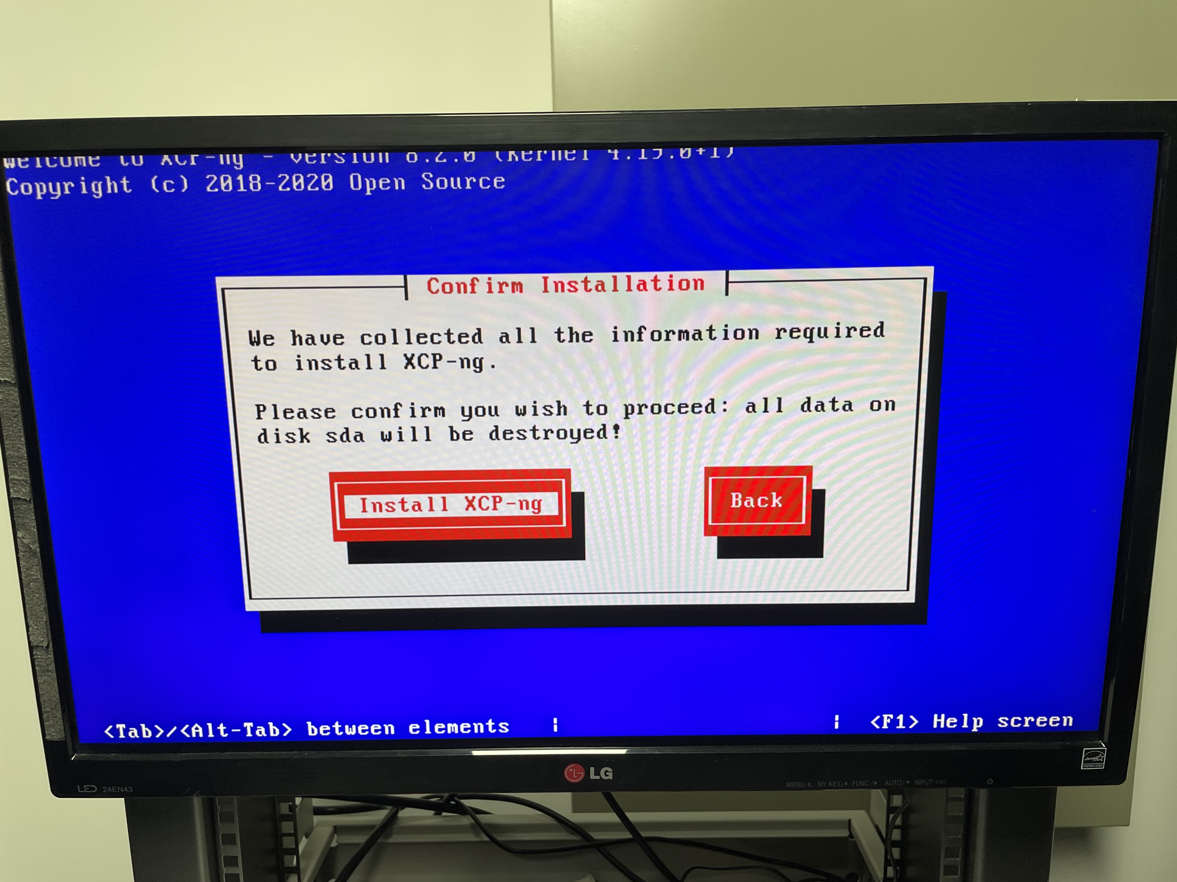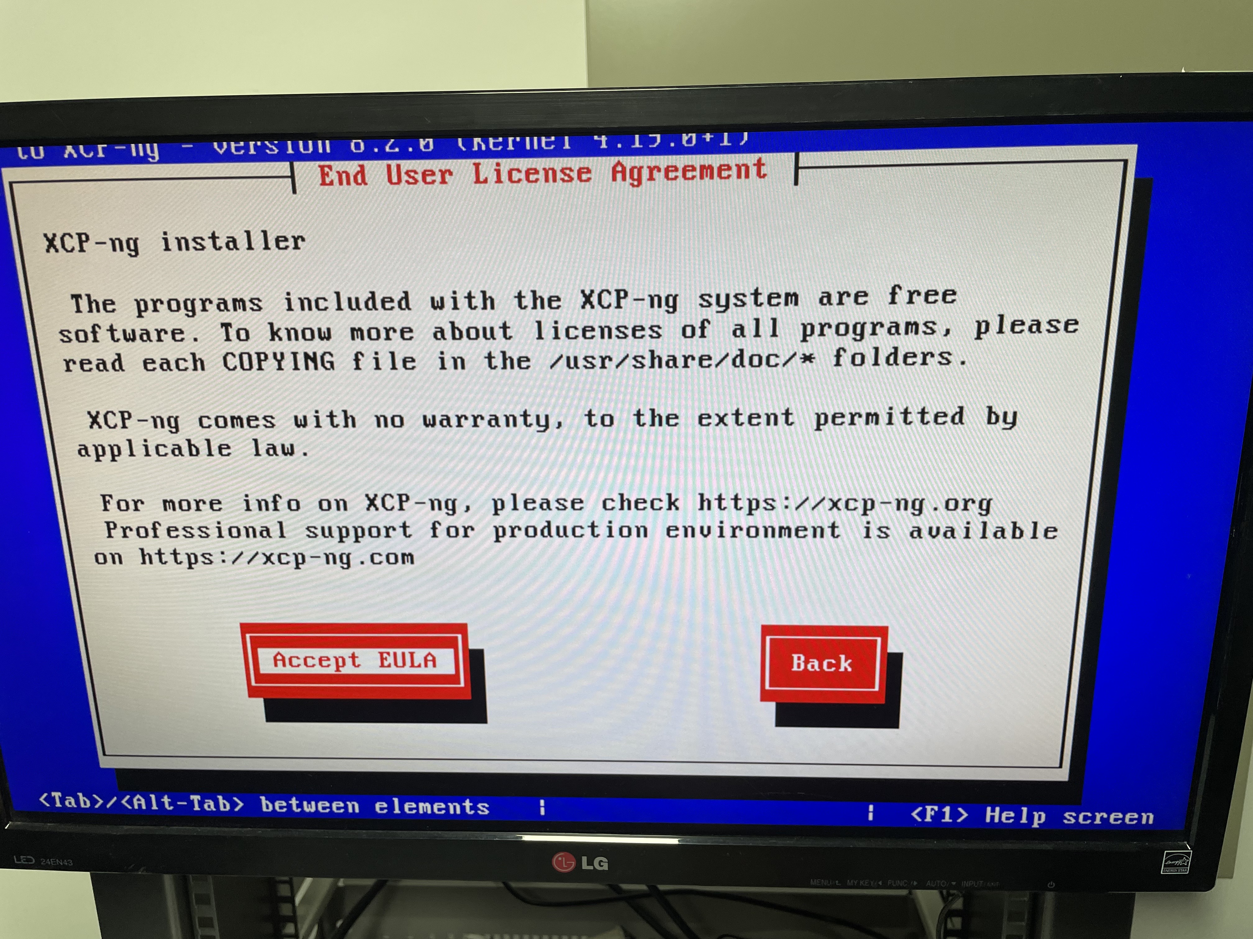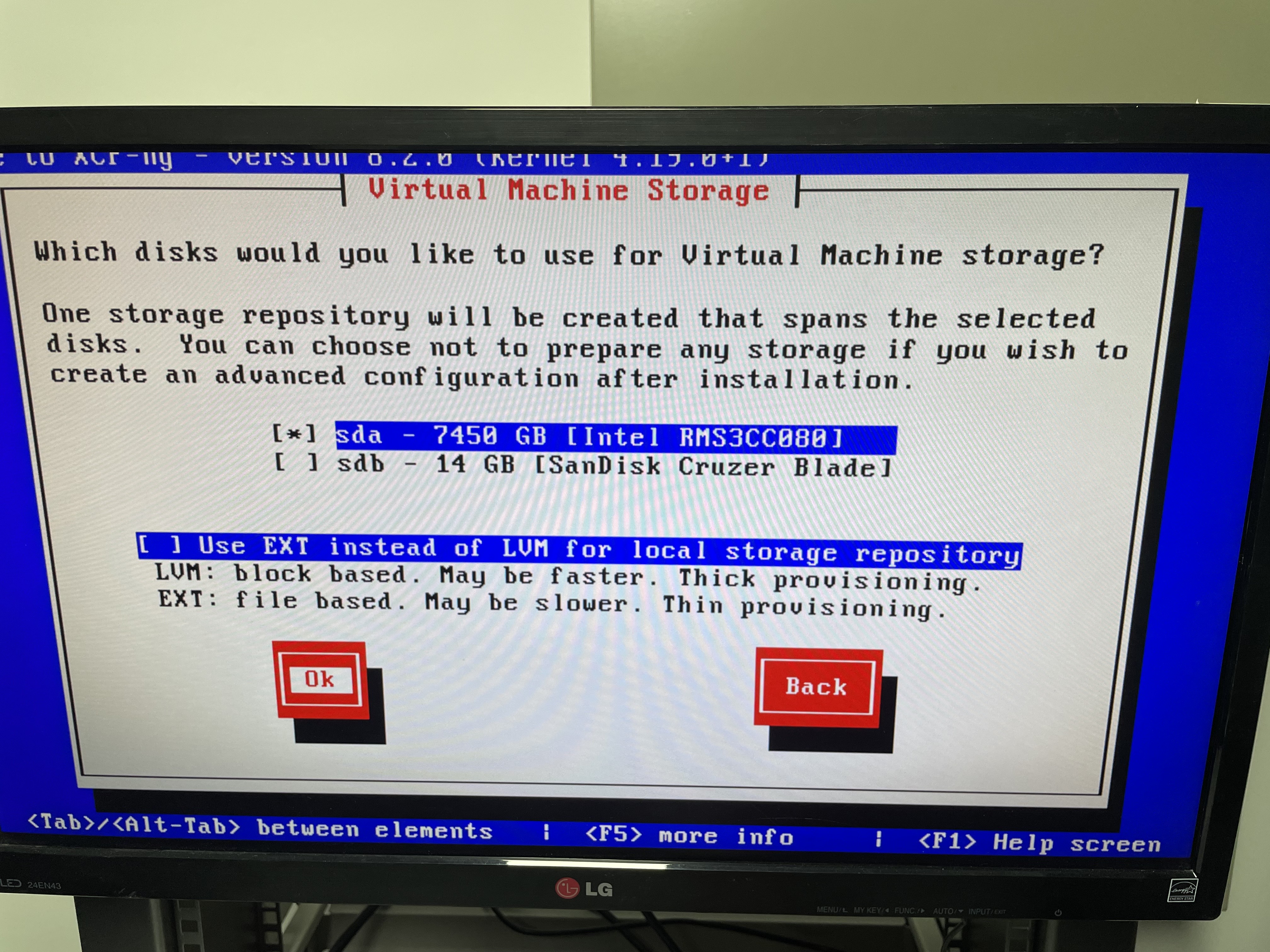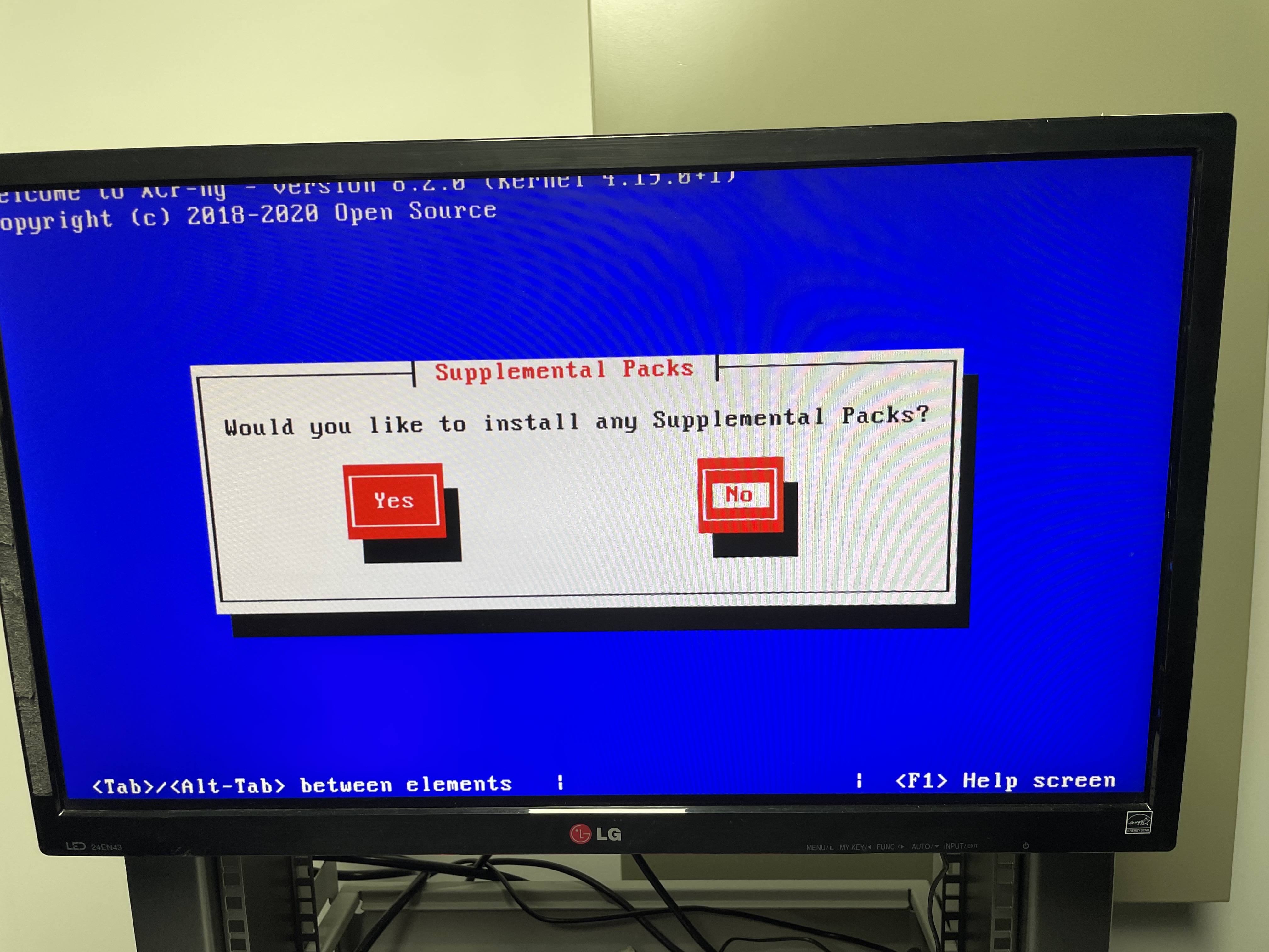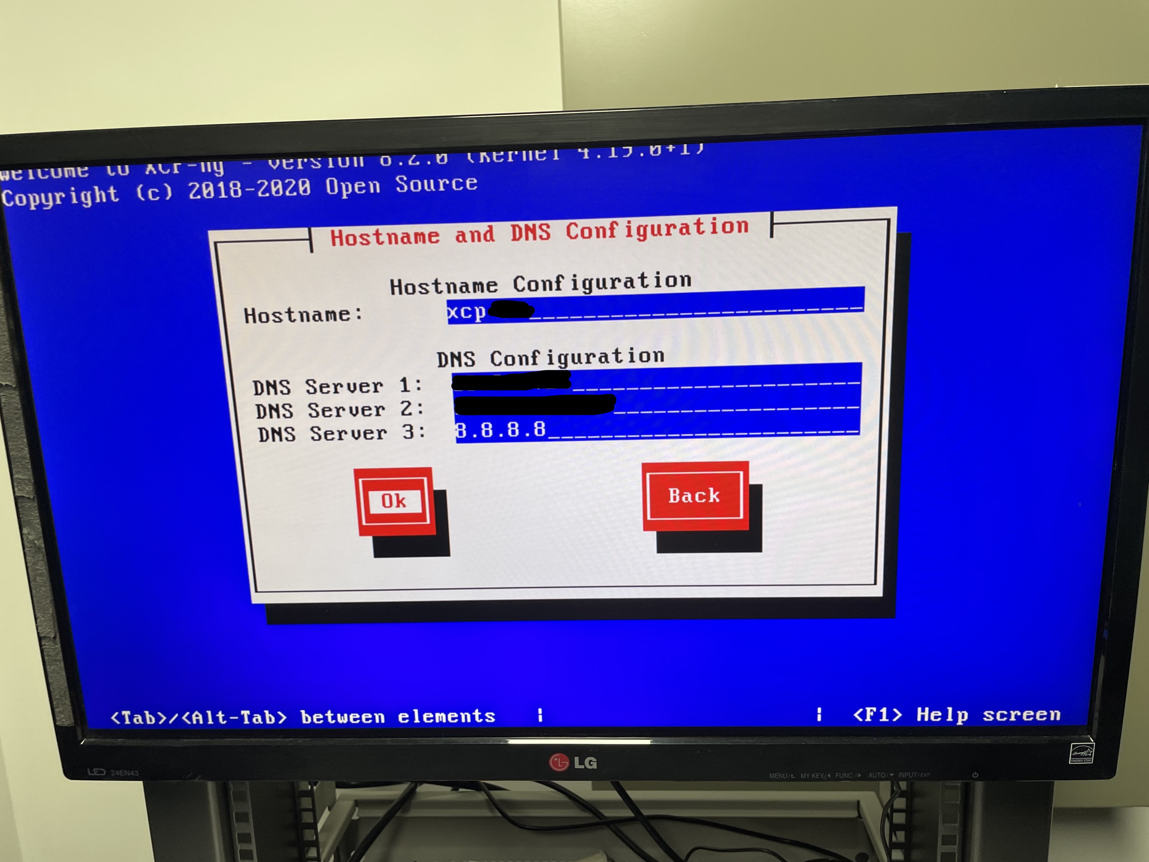 처음 실행하면 XCP-ng Setup이 나타납니다. Ok를 누릅니다.